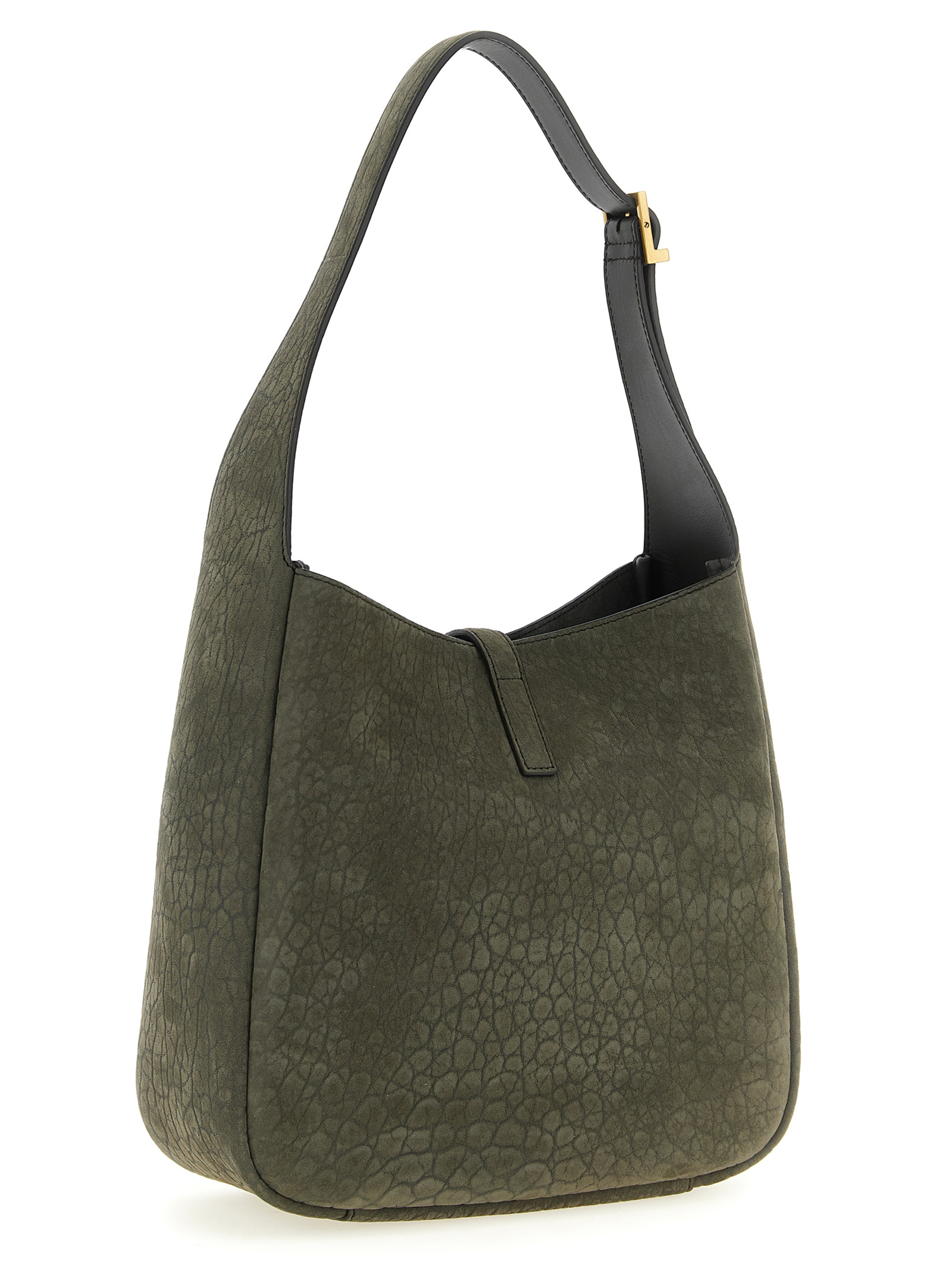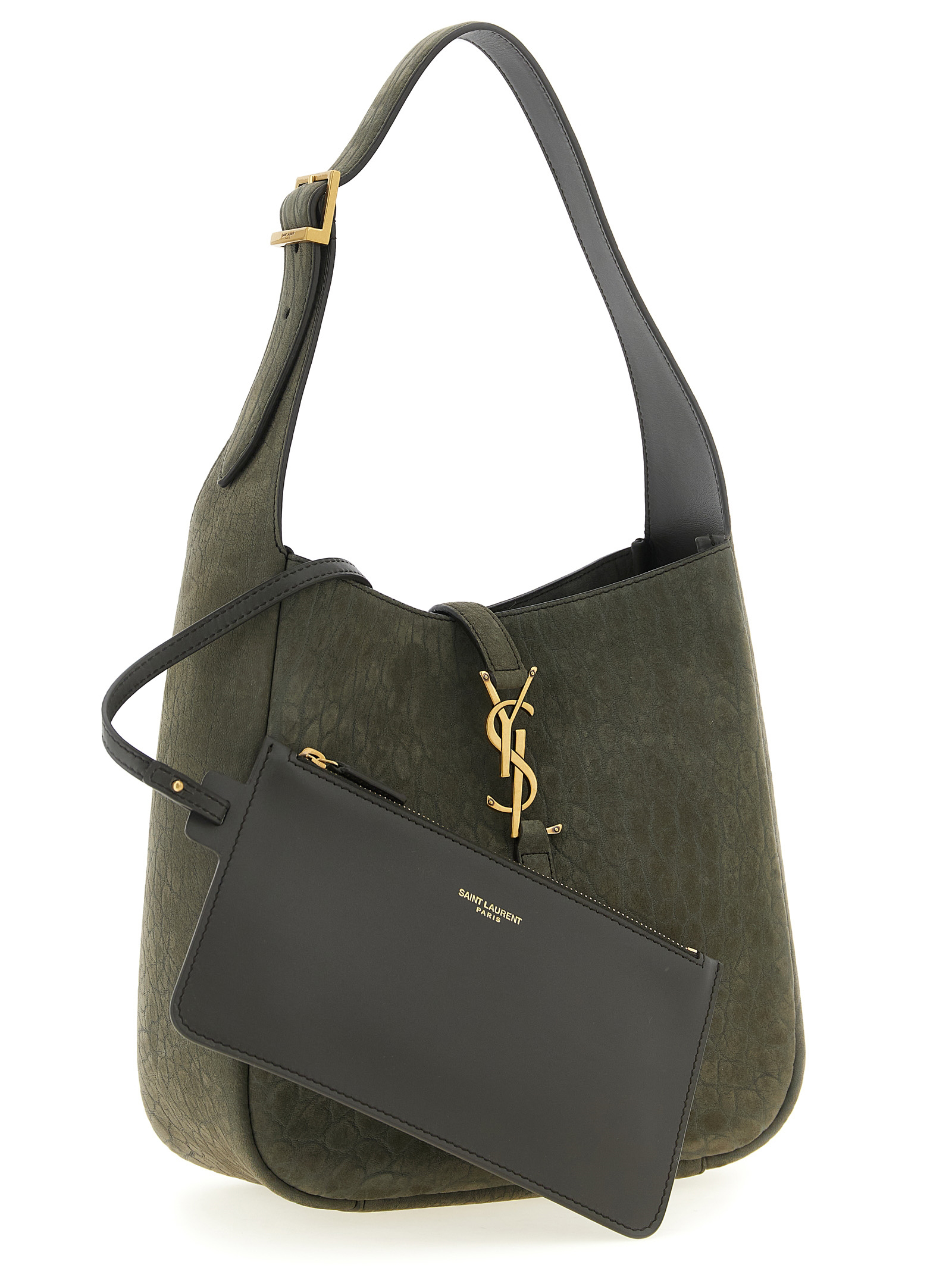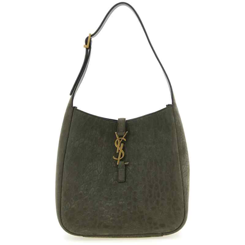 Micro ‘le 5 à 7’ shoulder bag in hammered nubuck leather, Suede lining, Adjustable handle, Closure with antiqued metal ‘cassandre’ interlocking effect, Removable clutch. Size and Fit – W 23 x h 22 x d 8 cm