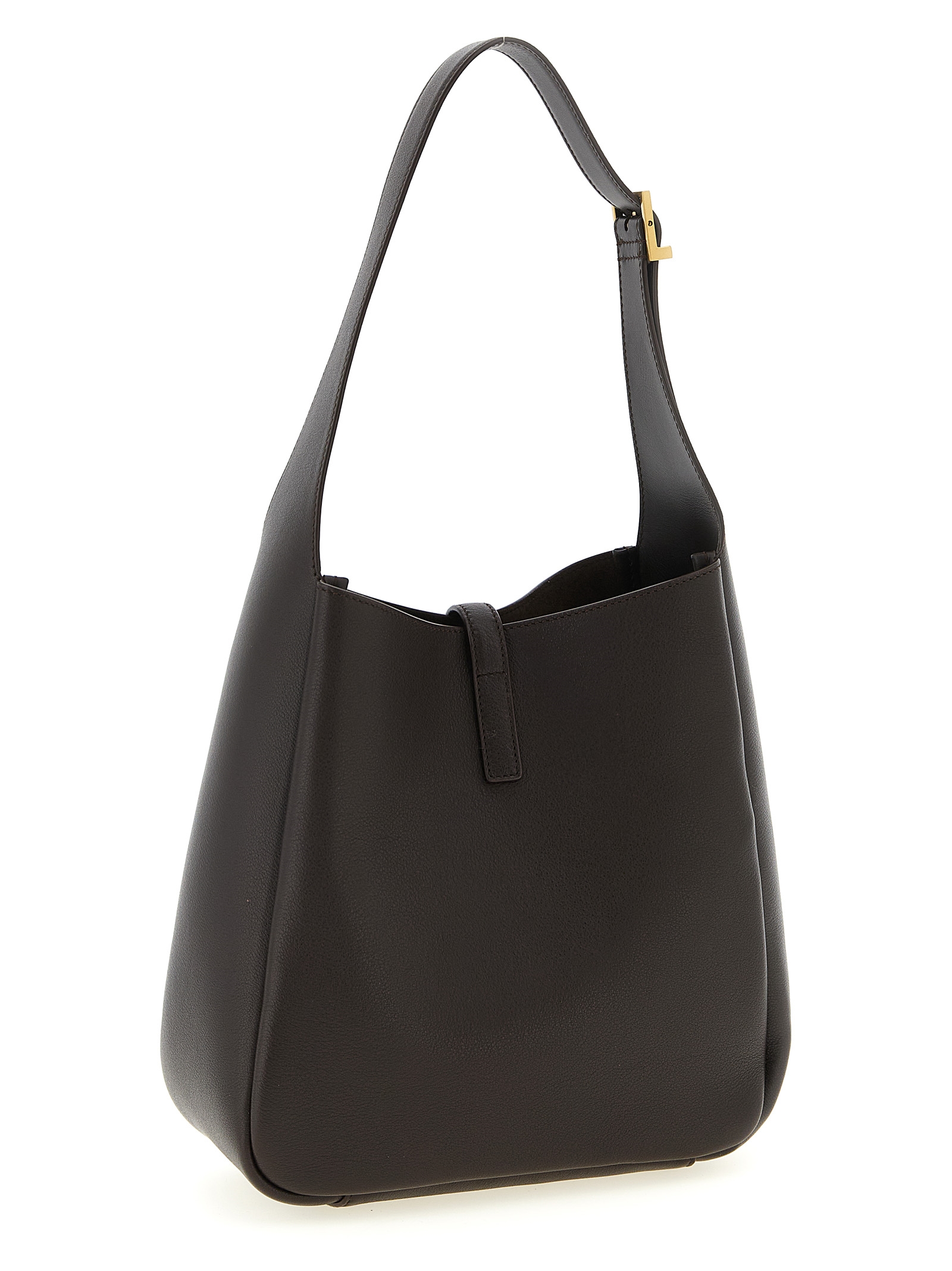 Micro ‘Le 5 à 7’ shoulder bag in hammered leather, suede lining, adjustable handle, Cassandre metallic logo closure with antique effect interlocking, removable clutch.