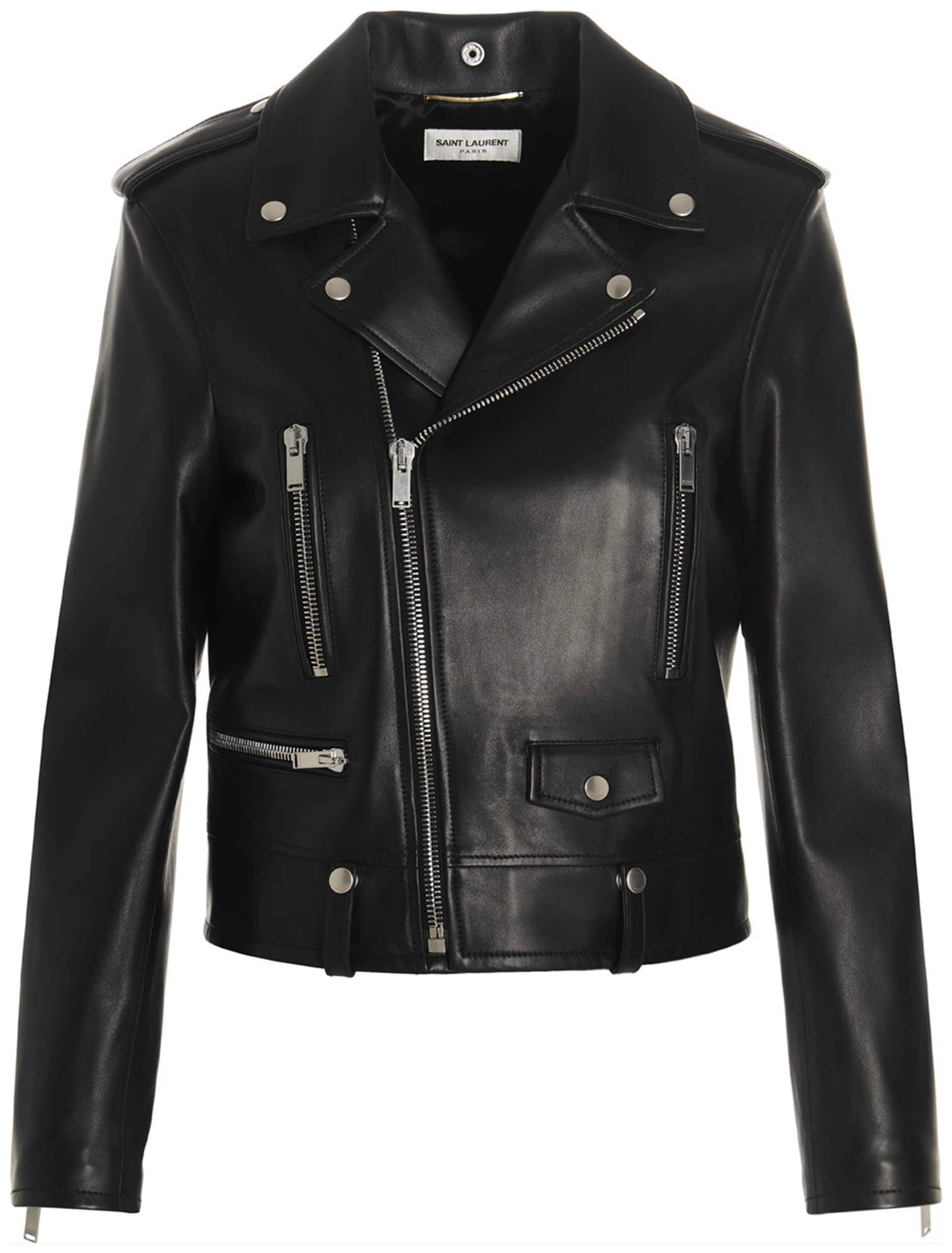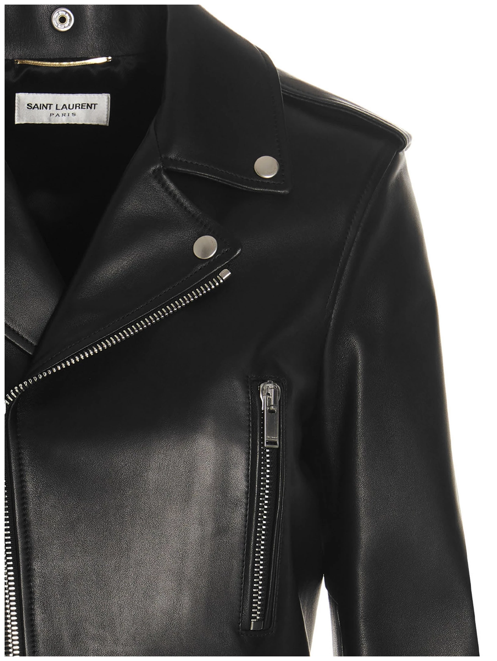 ‘motorcycle’ leather biker jacket with zip closure, Zipped pockets and silk lining.