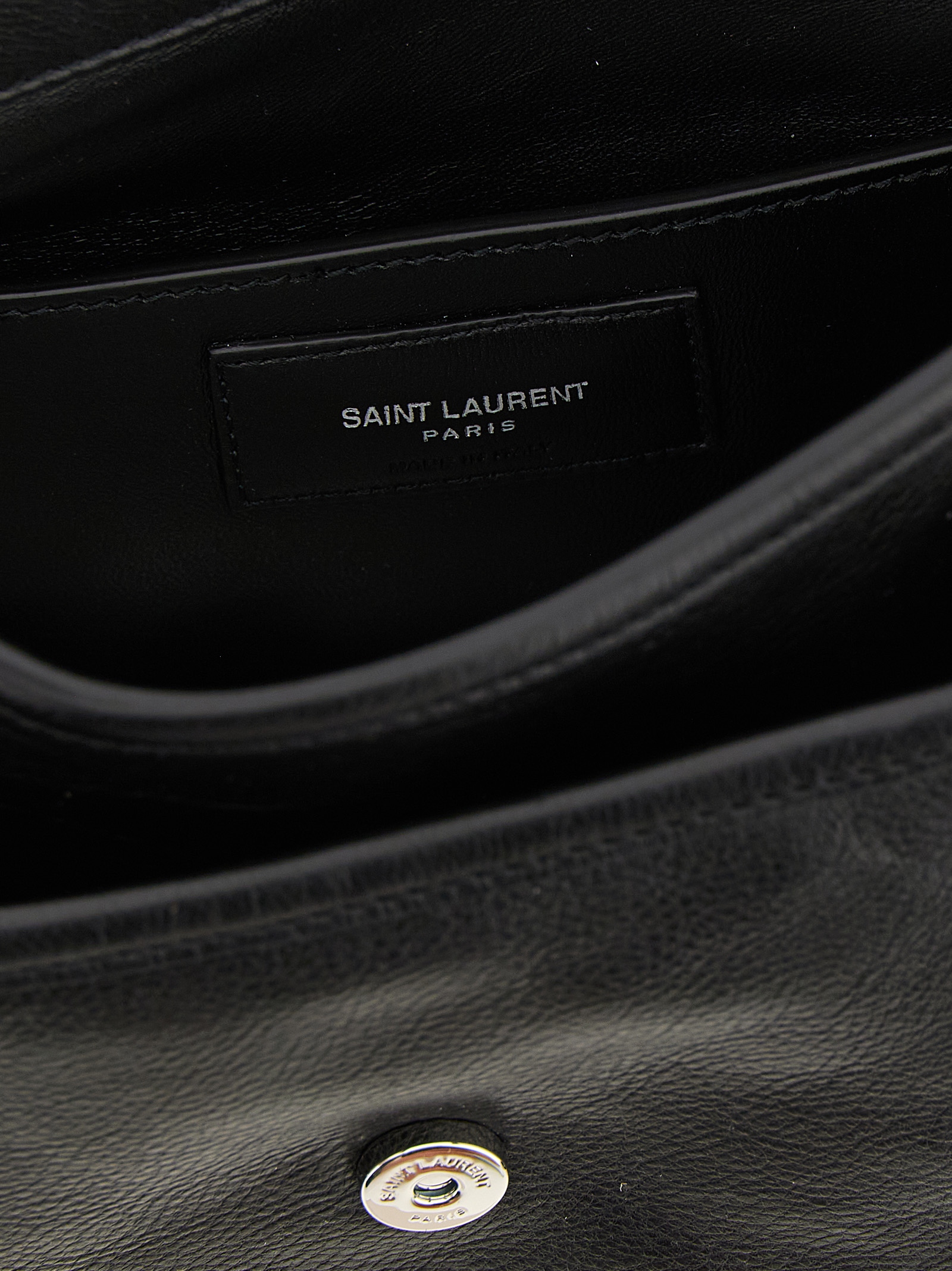 Small ‘niki’ hammered leather crossbody bag in messenger style, Magnetic flap closure with tone-on-tone metal ‘cassandre’ logo on the front, Back pocket, Leather lining, Adjustable tape shoulder strap.
