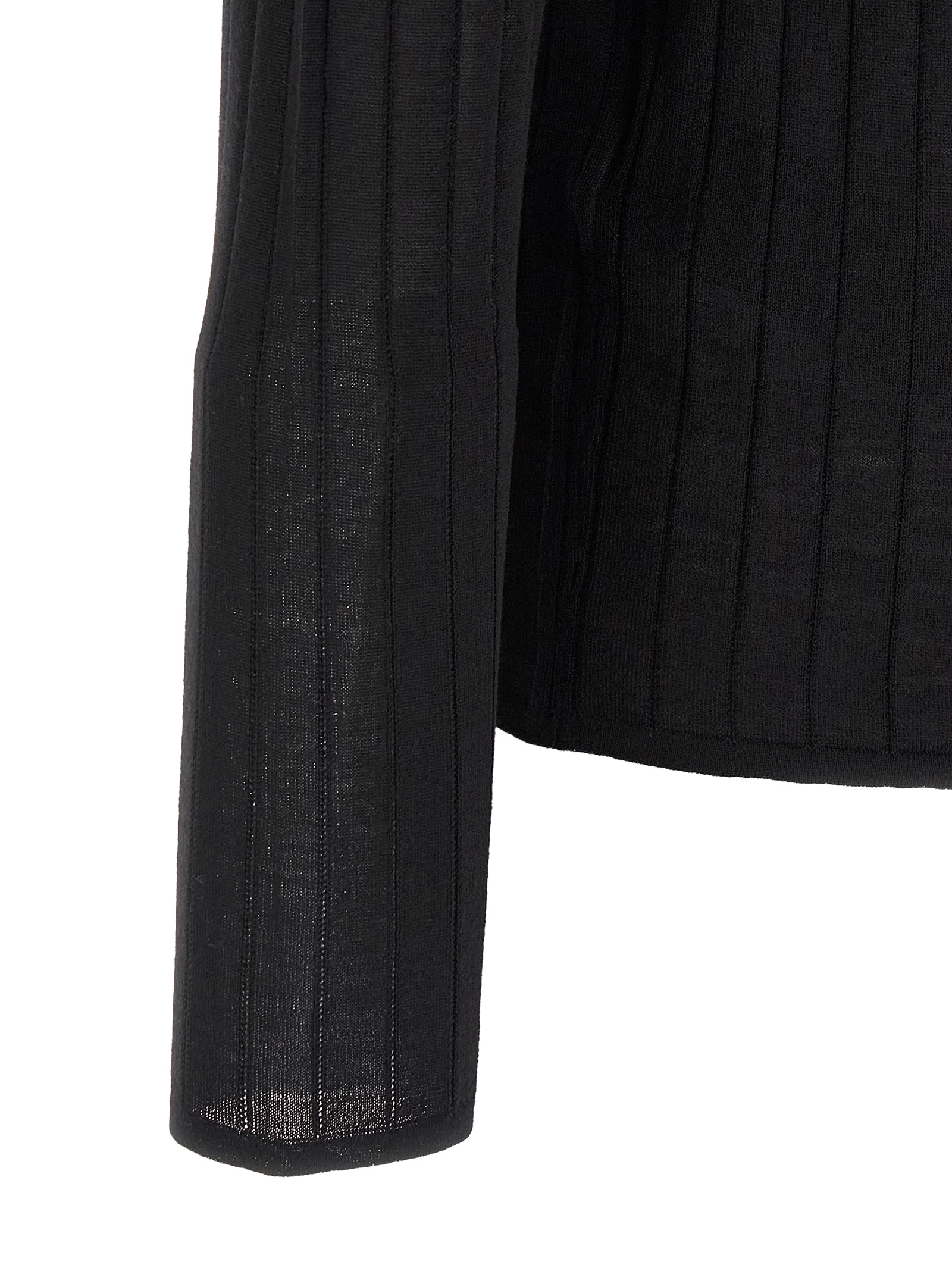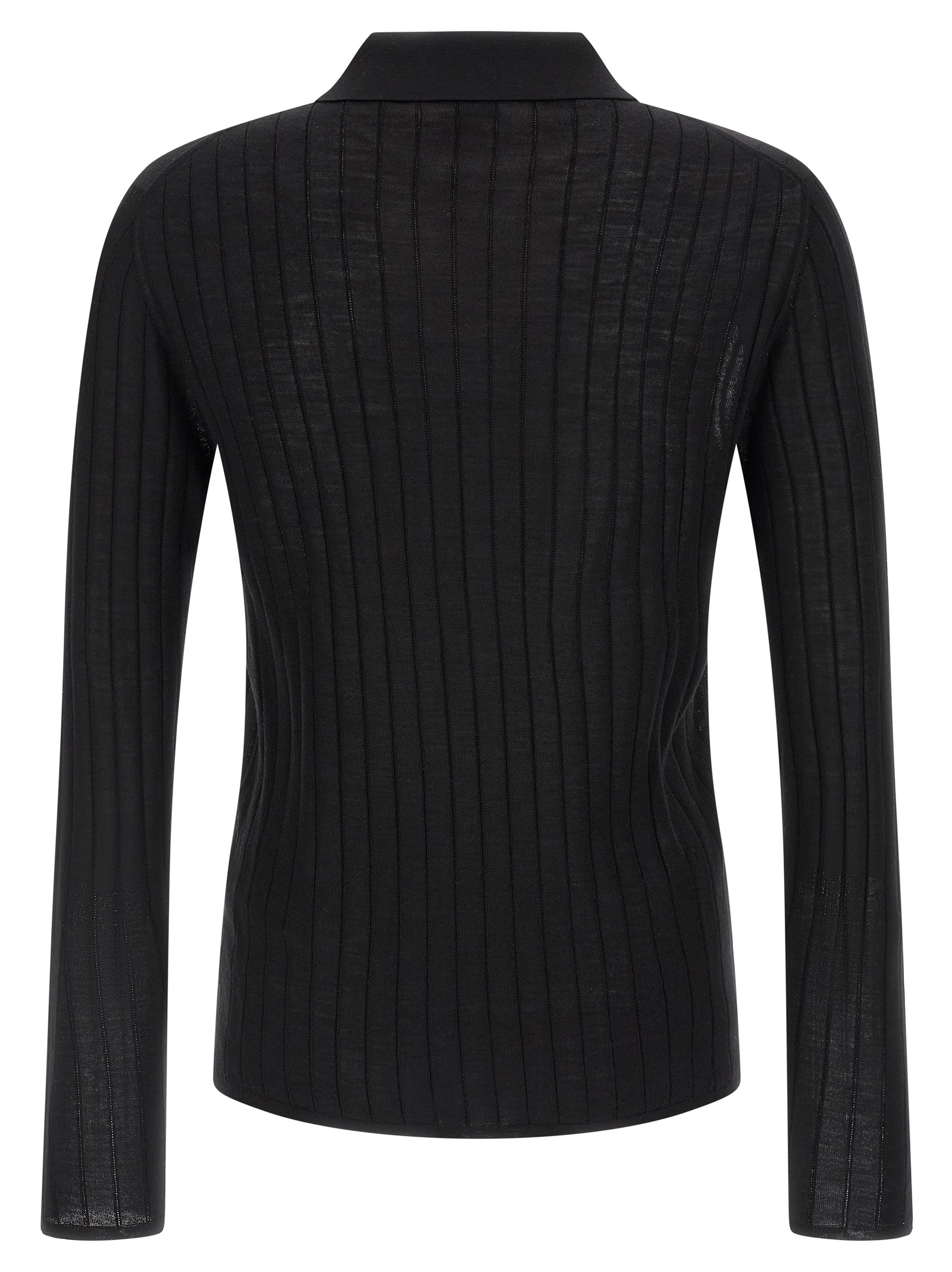 Semi-transparent wool pointelle polo shirt with flat ribs, Collar and buttons, Long sleeves.