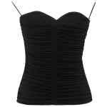 ruched strapless top from SAINT LAURENT featuring black, ruched bodice, sweetheart neck, concealed rear zip fastening, strapless and curved hem. Strapless draped top