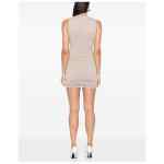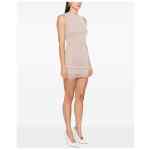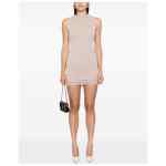 beige tulle semi-sheer construction ruched detailing round neck sleeveless thigh-length Stretch tulle short dress