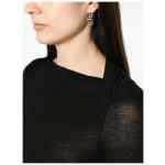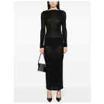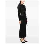 black fine knit lightweight cowl neck open back long sleeves column silhouette long length Wool blend long pencil dress