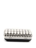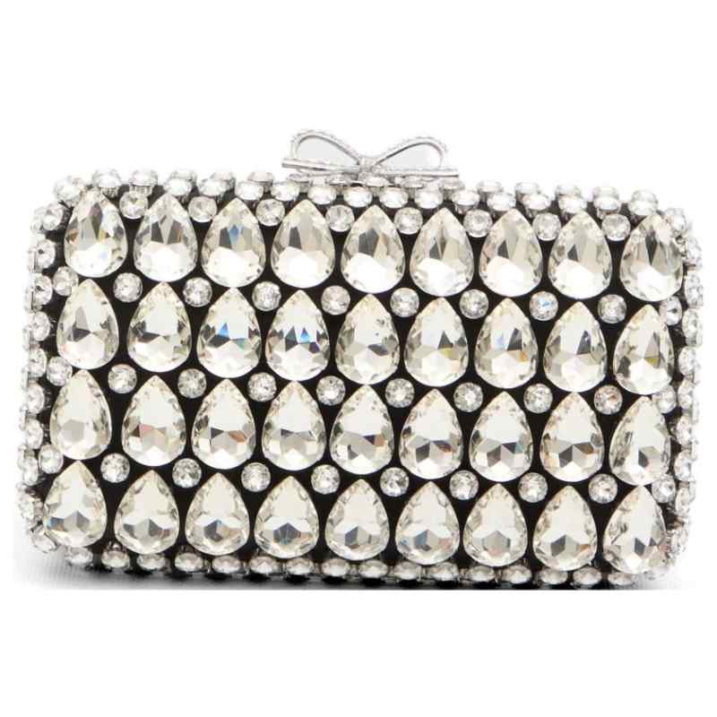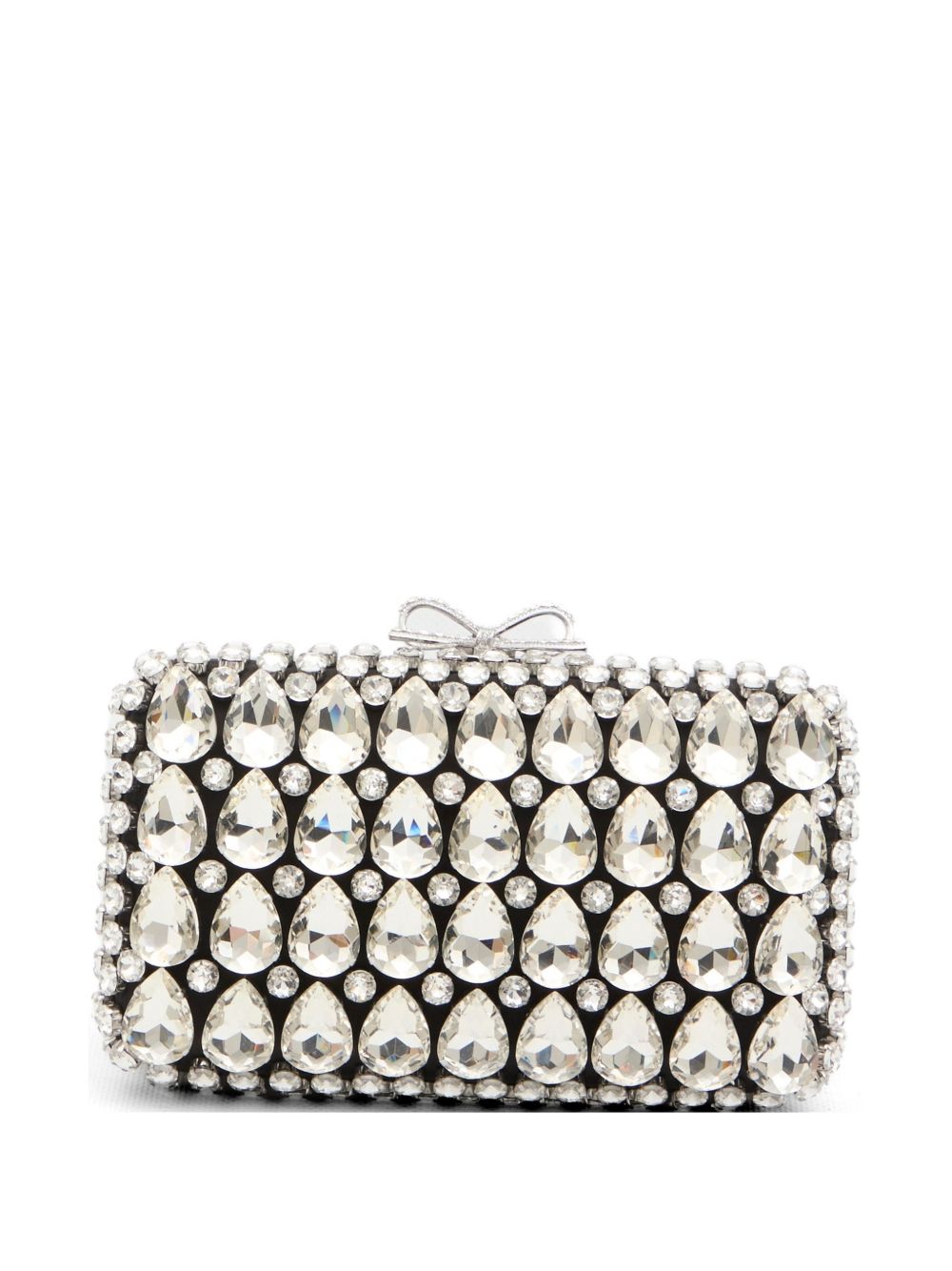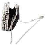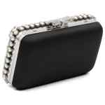 black removable chain shoulder strap clasp fastening one main compartment Crystal embellished clutch.
