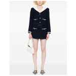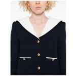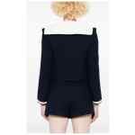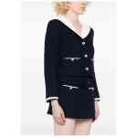 navy blue front button fastening two front welt pockets stripe trim contrasting collar Bouclé short jacket