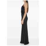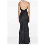 black polka dot print lace detail thin straps deep neckline front button closure Polka dot long dress