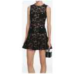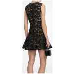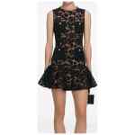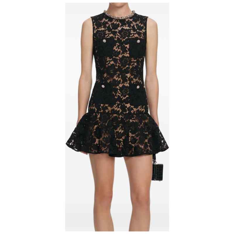 black lace jewel buttons four pockets flared skirt zip fastening Lace mini dress.