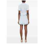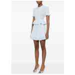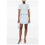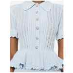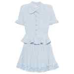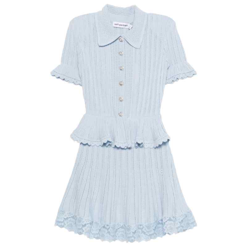 blue pointelle knit ruffled trim collar button fastening lace trim Peplum mini dress.