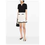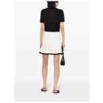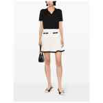 white/black crochet knit sequin embellishment contrasting ribbed trim elasticated waistband slim cut two front patch pockets peplum hem thigh-length mesh lining Crochet mini skirt