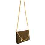 brown chain strap charm detail magnetic flap closure Falabella wallet on chain