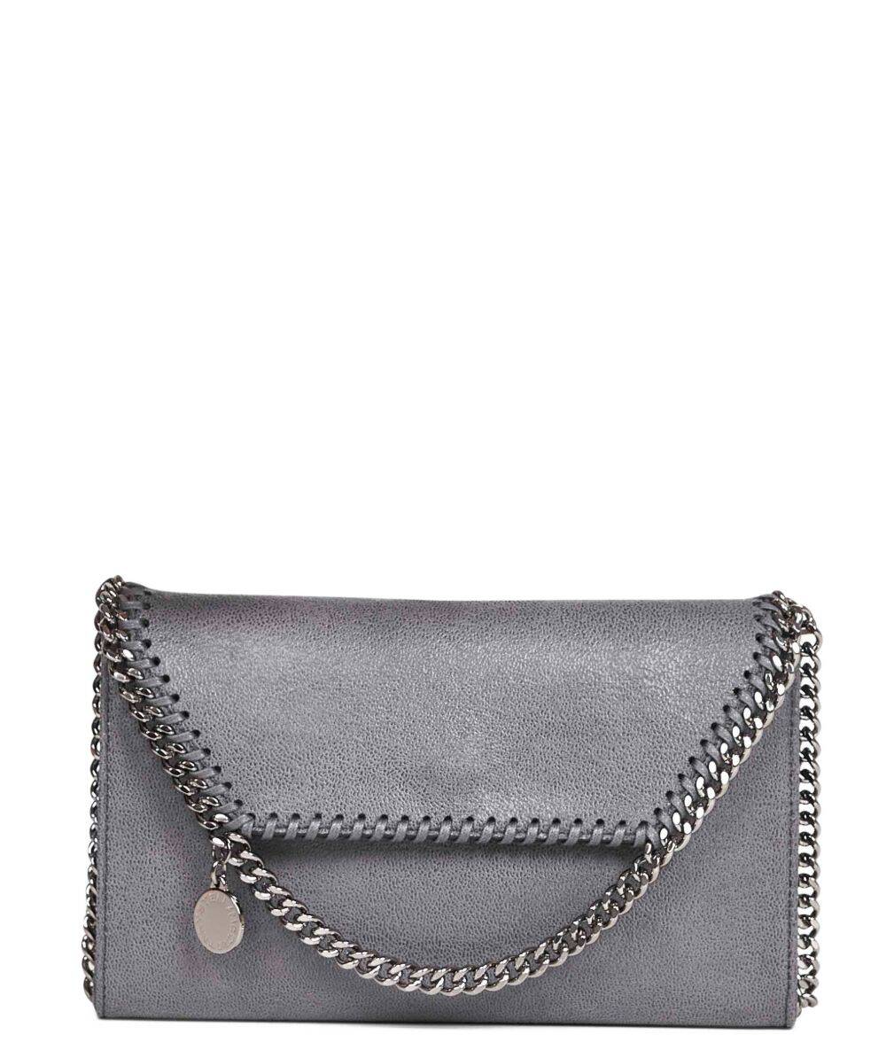 grey chain trim charm detail shoulder chain strap rectangular body Falabella wallet on chain