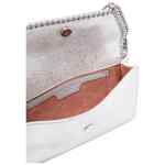 silver-tone metallic finish silver-tone hardware signature diamond-cut chain-link trim detachable chain-link shoulder strap foldover top with magnetic fastening internal slip pocket logo-print lining Falabella wallet on chain