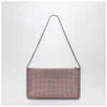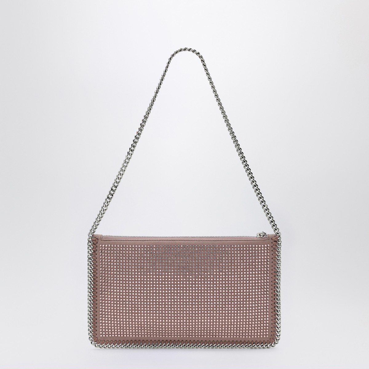 Opaque vegan Shaggy Deer fabric pink clutch shoulder bag from Stella McCartney featuring an all over rhinestone embellished, silver-tone, chain shoulder strap, zip closure, zip puller with an engraved logo medallion charm and a single compartment.