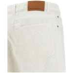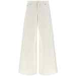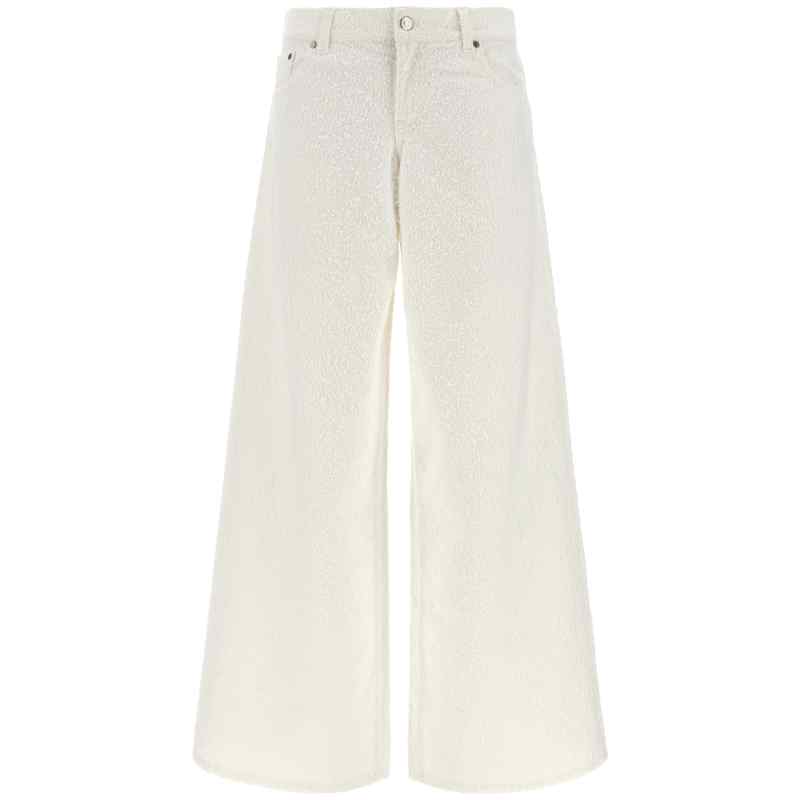 Cotton denim jeans with boucle pattern, 5-pocket model, Medium waist, Wide leg, Front zip and button closure.