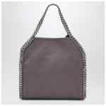 Mini Stella McCartney Tote Bag in brown Bark Shaggy Deer with ruthenium chain and circular logo medallion, featuring an internal flat pocket, magnetic button closure and two top handles.