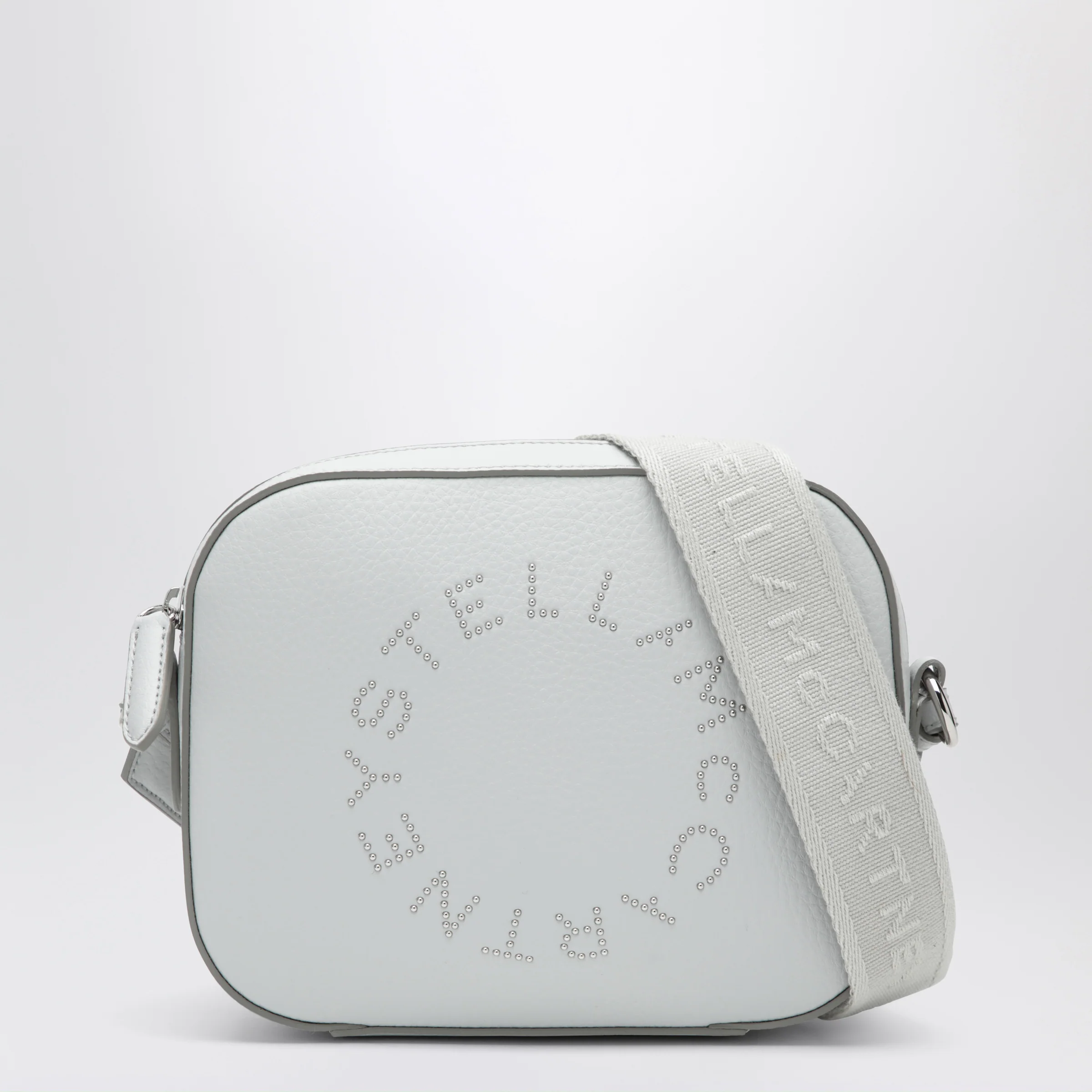 Stella McCartney Pearl grey camera bag with logo and shoulder strap