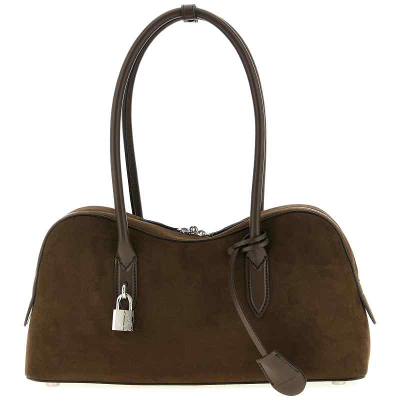 ‘ryder’ suede effect fabric crossbody bag, Double fixed handle, Zip closure, Inside pocket, Metal padlock with engraved logo, Metal feet. Size and Fit – W 35 x h 17.5 x d 10 cm