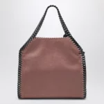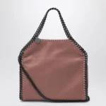 Mini tote bag by Stella McCartney in Sienna brown shaggy deer with ruthenium chain