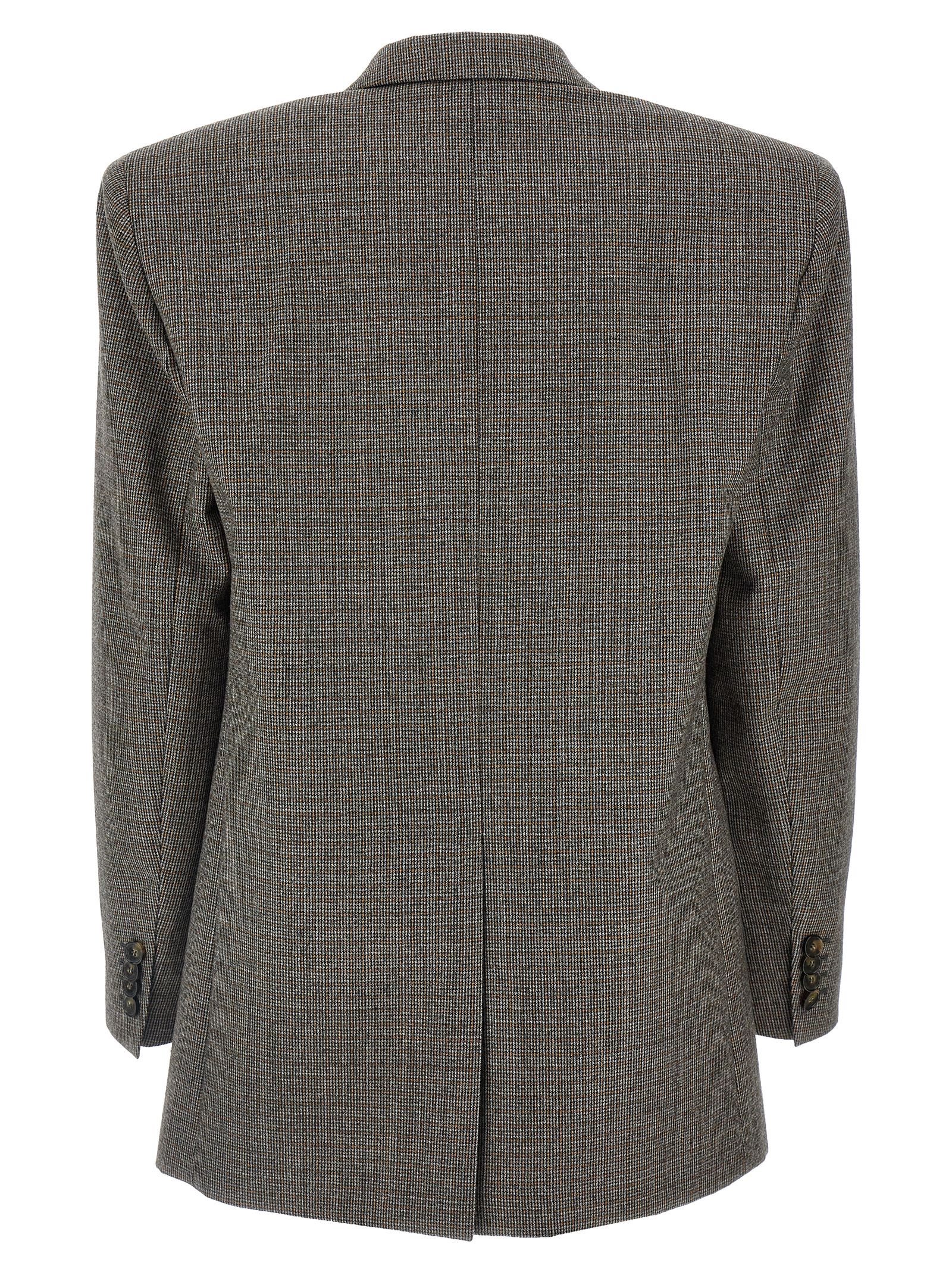 Single-breasted blazer in micro houndstooth wool with button closure, Flap pockets, Padded shoulders, Back split. Size and Fit – Oversized fit