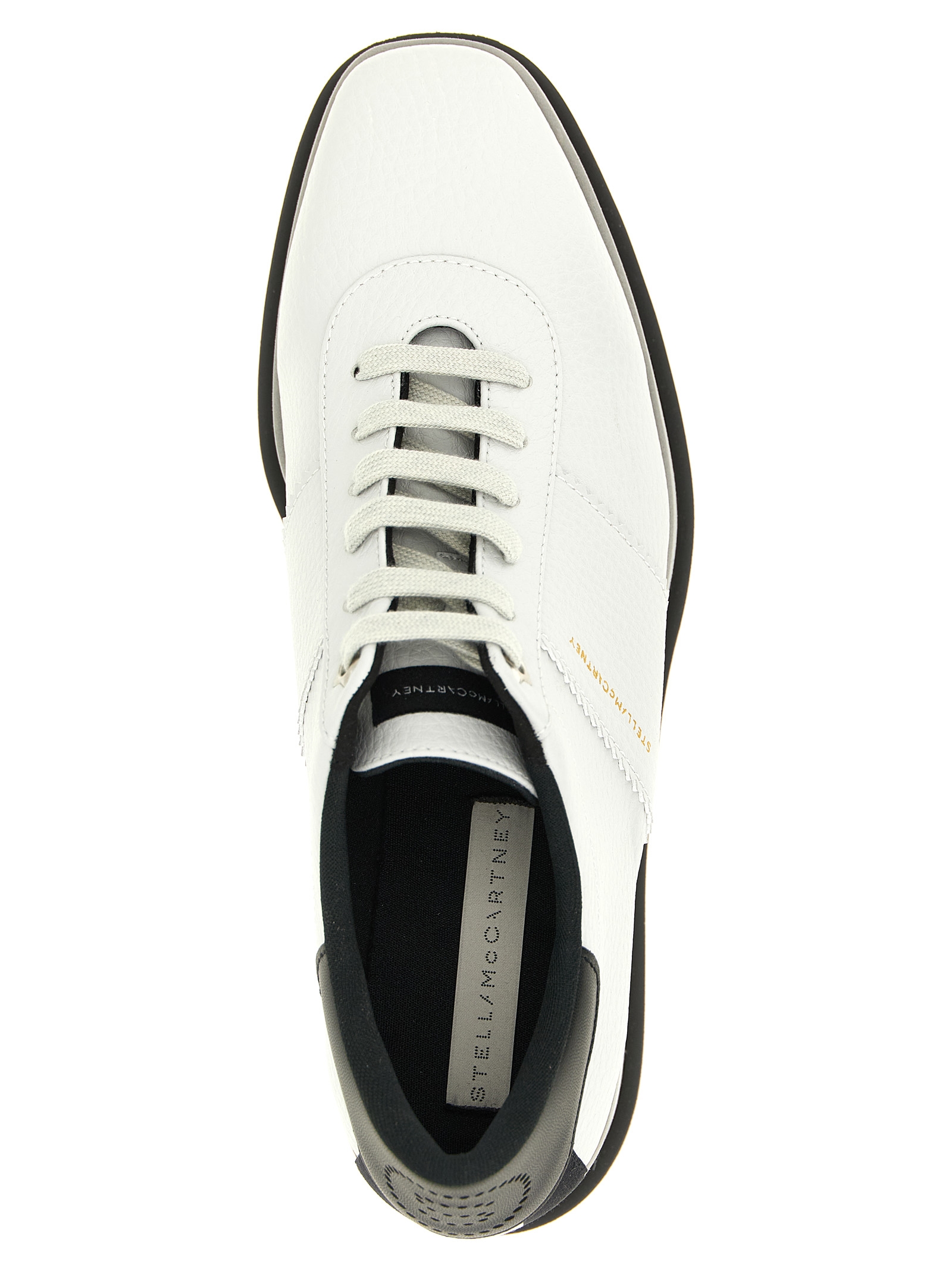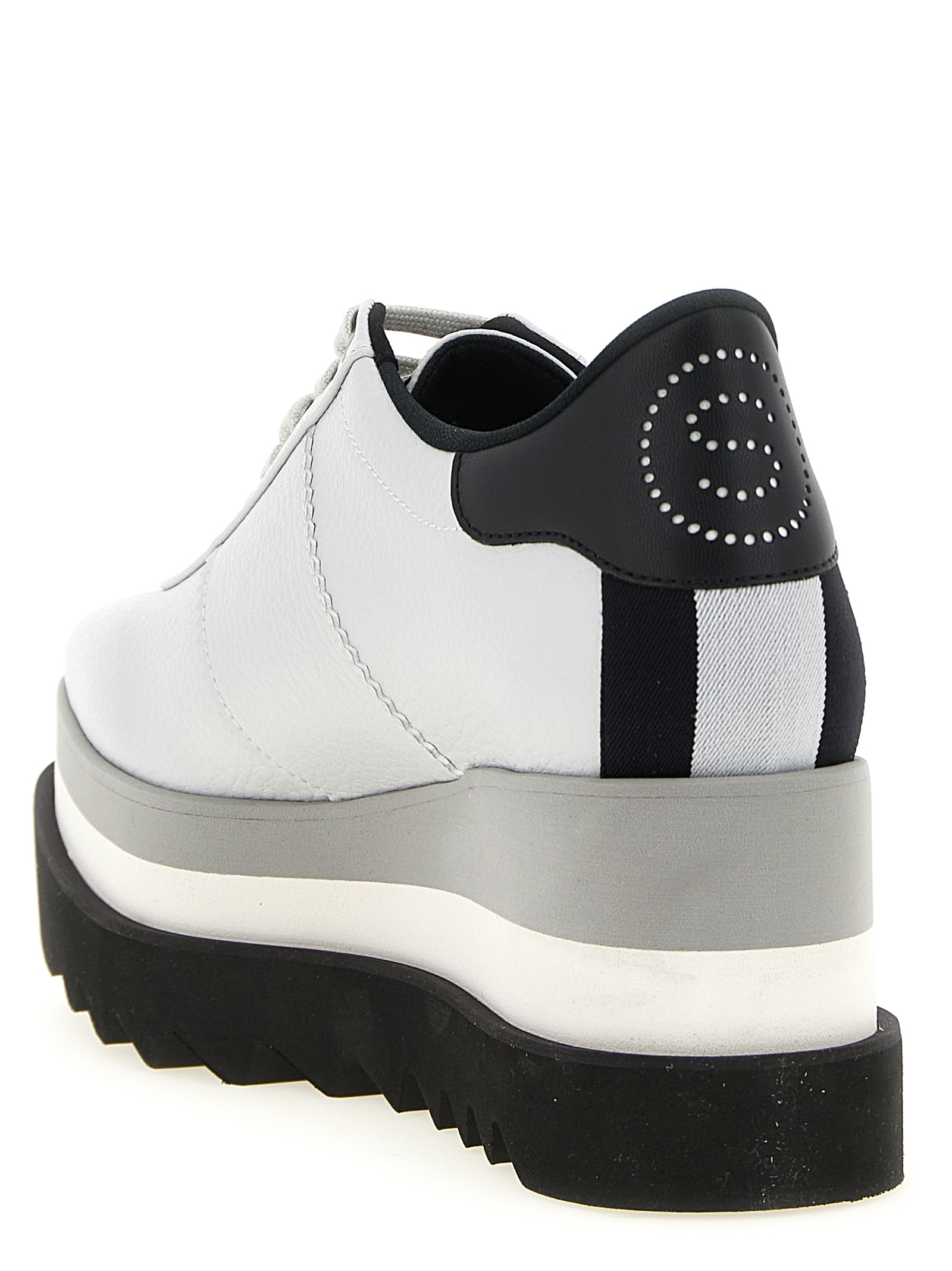 ‘sneakelyse’ sneakers in grainy alter mat, Contrasting heel with perforated logo, Lace-up closure, Side embossed logo, Padded insole, Wedge and platform, Micro lightweight sole with contrasting serrated edge.