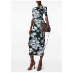 black floral print round neck three-quarter sleeves Bunch Of Roses mesh top