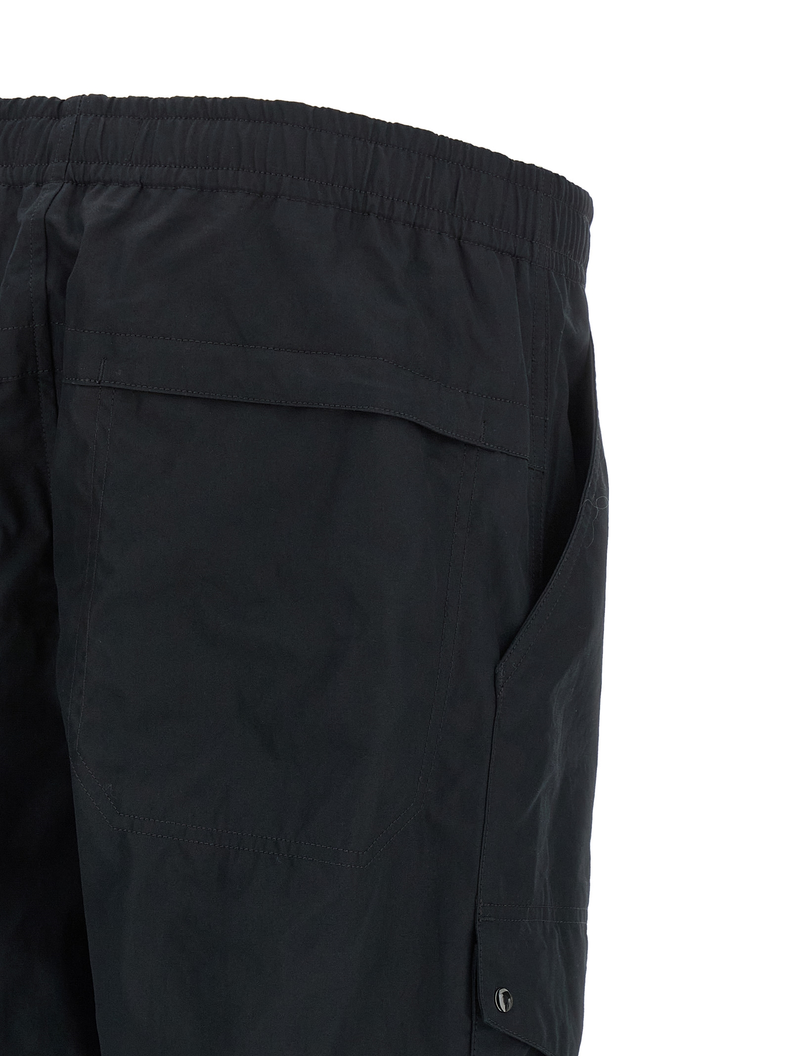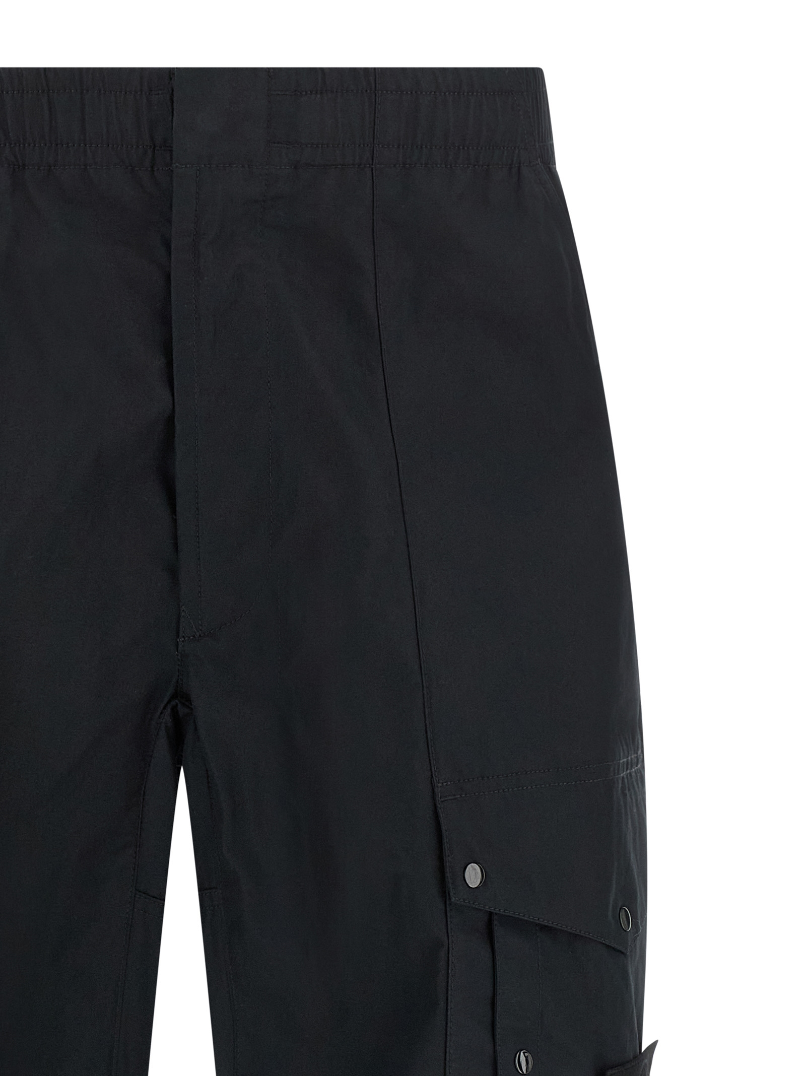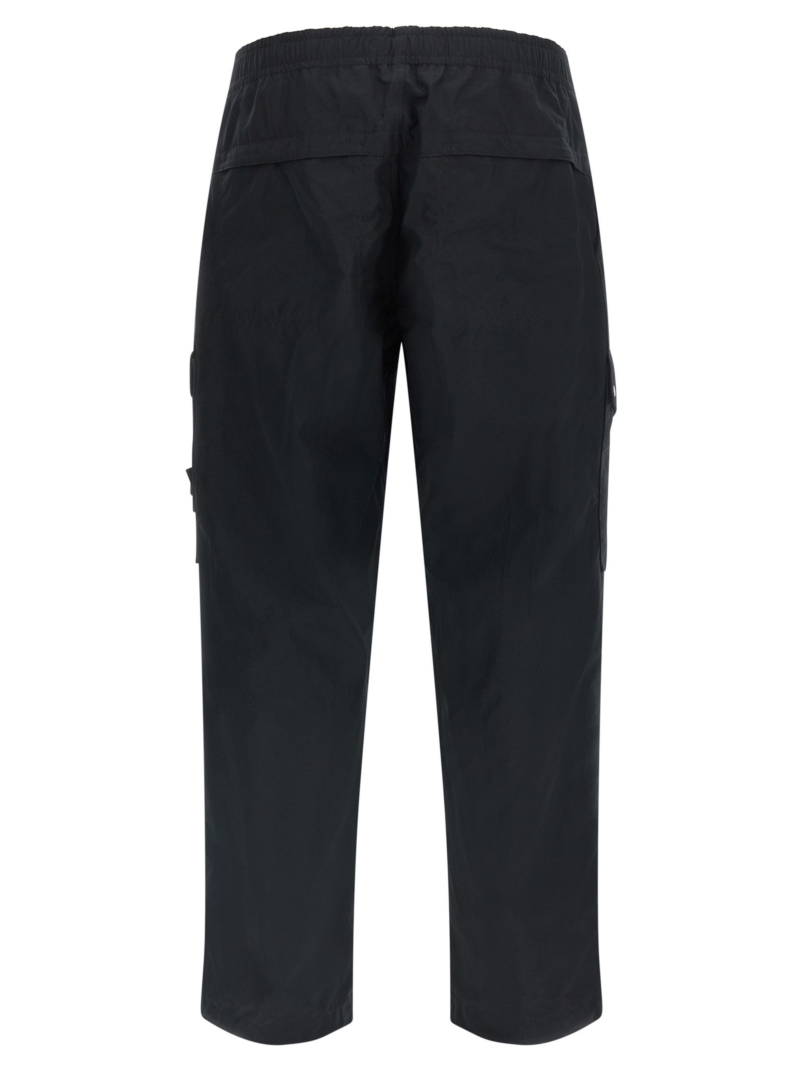 ‘3100017’ cotton canvas pants with a tight windproof weave, Breathable and extremely resistant, Cargo model with side pockets and is ‘badge stone island ghost’ tone on tone applied, Elastic with drawstring at the waist, Zip hook and front button closure, Pockets, Flared leg, Drawstring on the leg bottom.