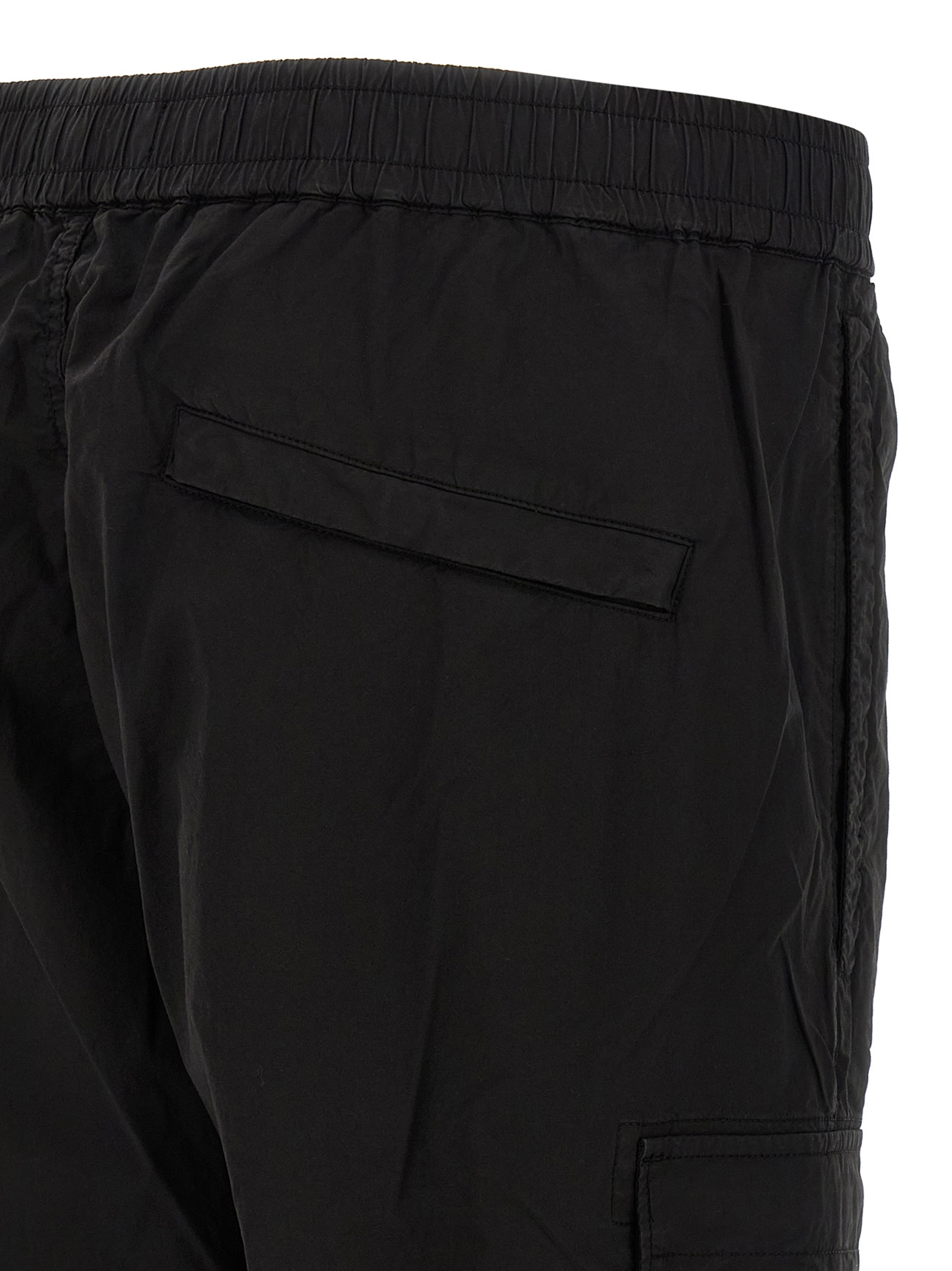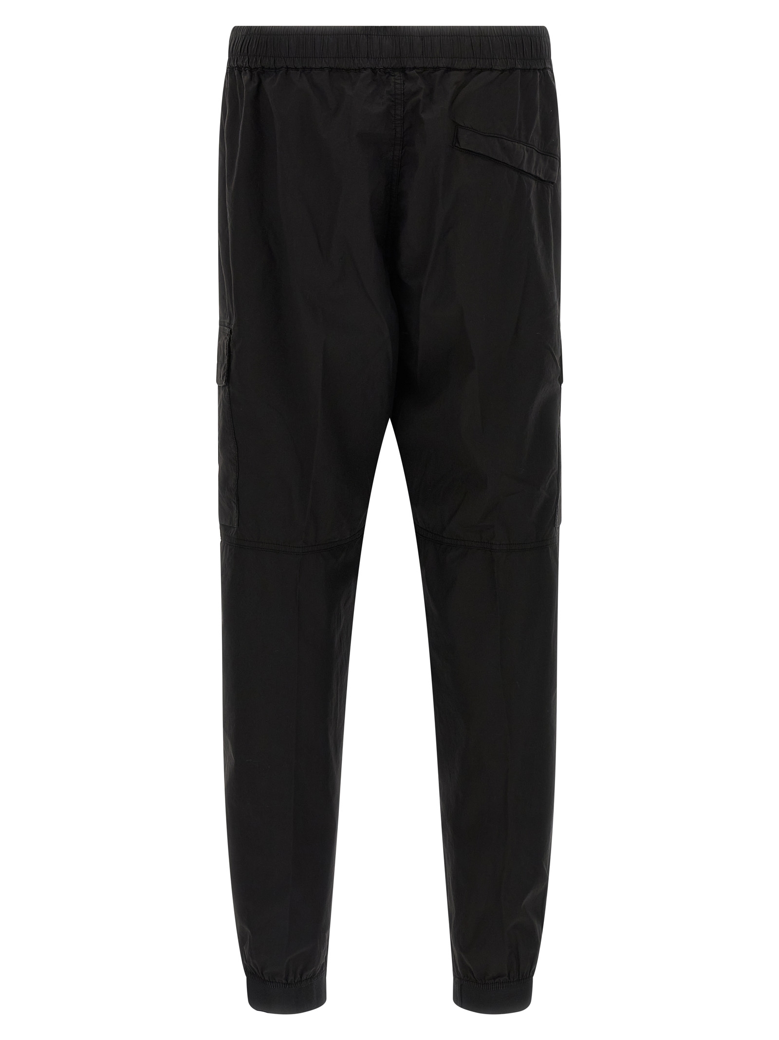 ‘3100031’ trousers in light ‘Paracadute’ garment-dyed stretch cotton canvas, cargo style with side pockets and logo badge, zip flap, drawstring elastic waistband, pockets, elastic cuffs on the leg bottoms.