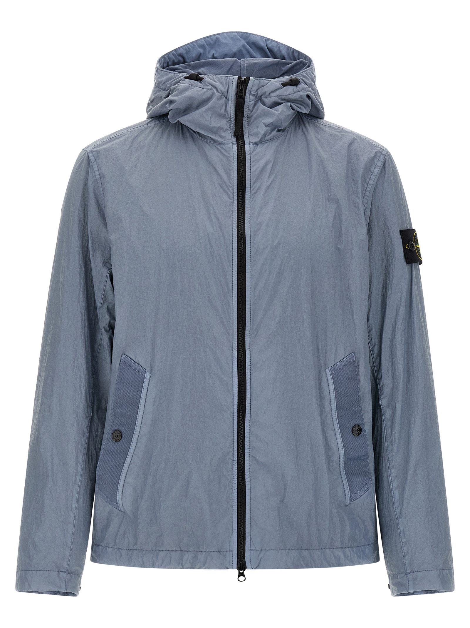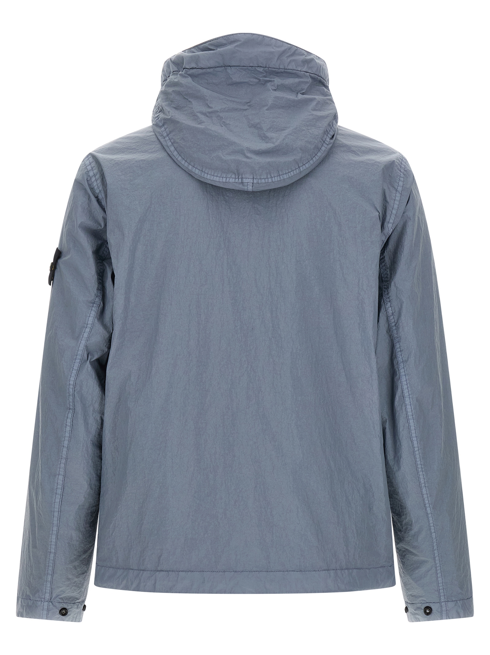 ‘4100001’ lightweight nylon reps jacket with very dense weave structure, Garment-dyed with anti-drip agent and wrinkled-effect resin treatment, Adjustable hood with shaped visor, Front zip closure, Pockets, Long sleeves with cuffs and logo badge applied, Drawstring on the hem.