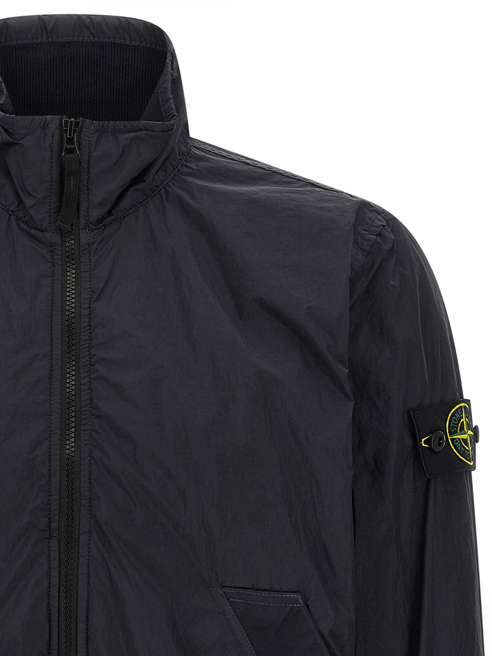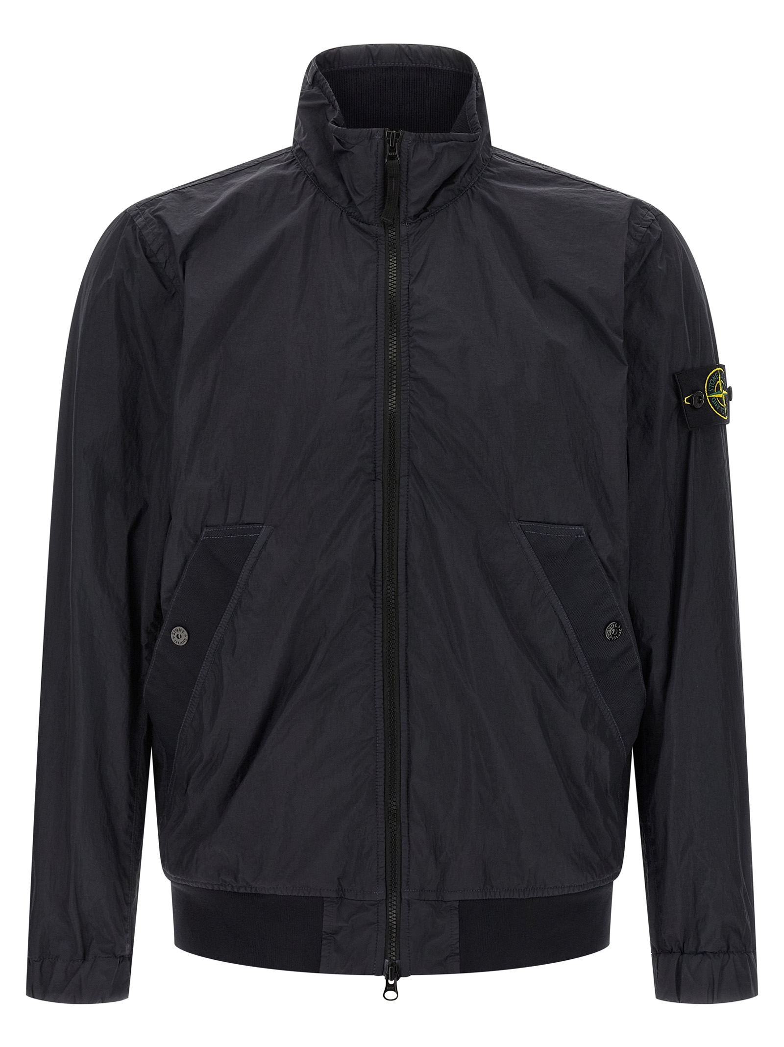 ‘4100111’ lightweight nylon reps jacket with very dense weave structure, garment-dyed with anti-drip agent and wrinkled resin treatment, high neck, front zip closure, pockets, long sleeves with elastic cuffs and logo badge, ribbed stretch knit band on the hem._x000D_