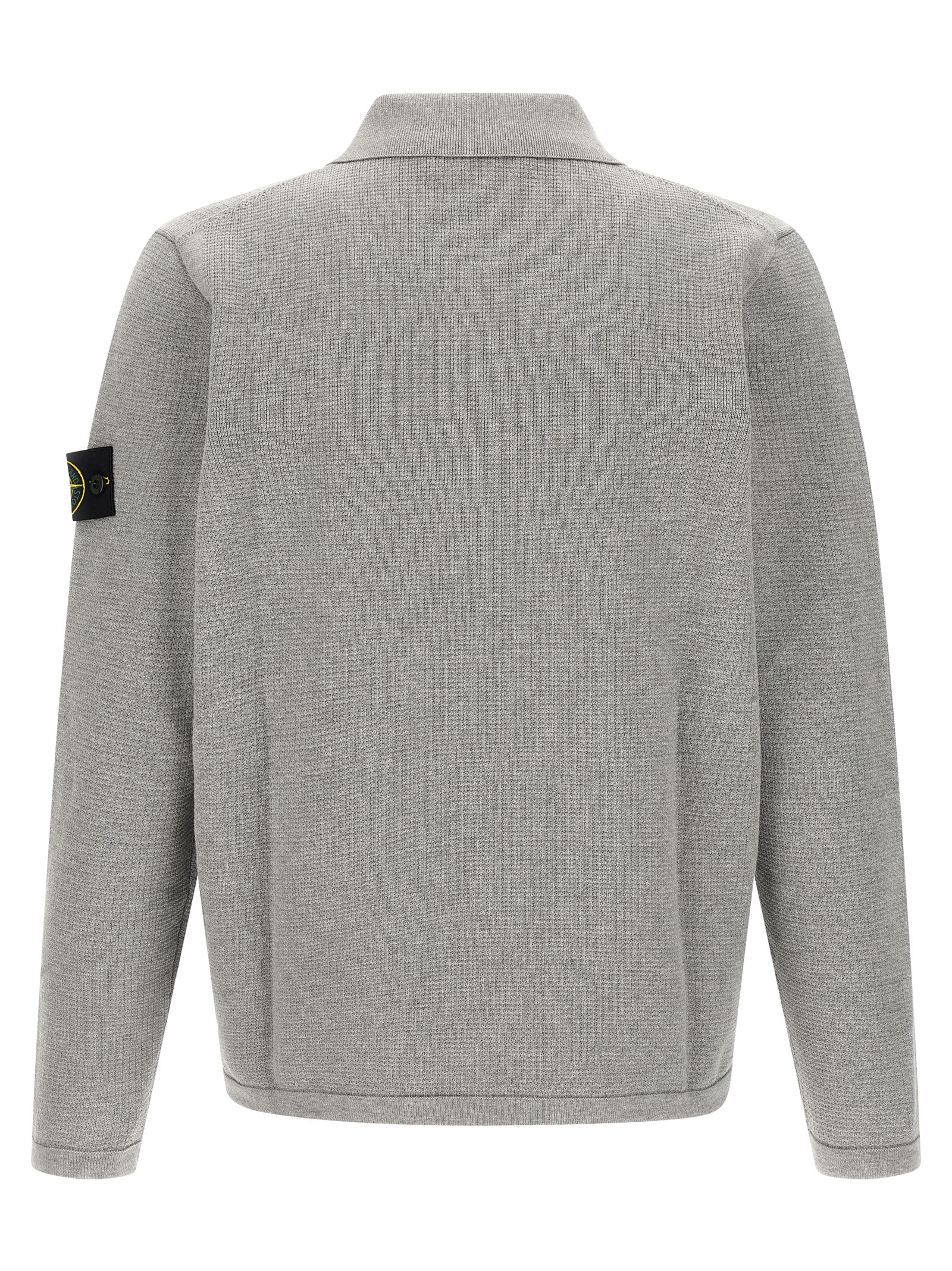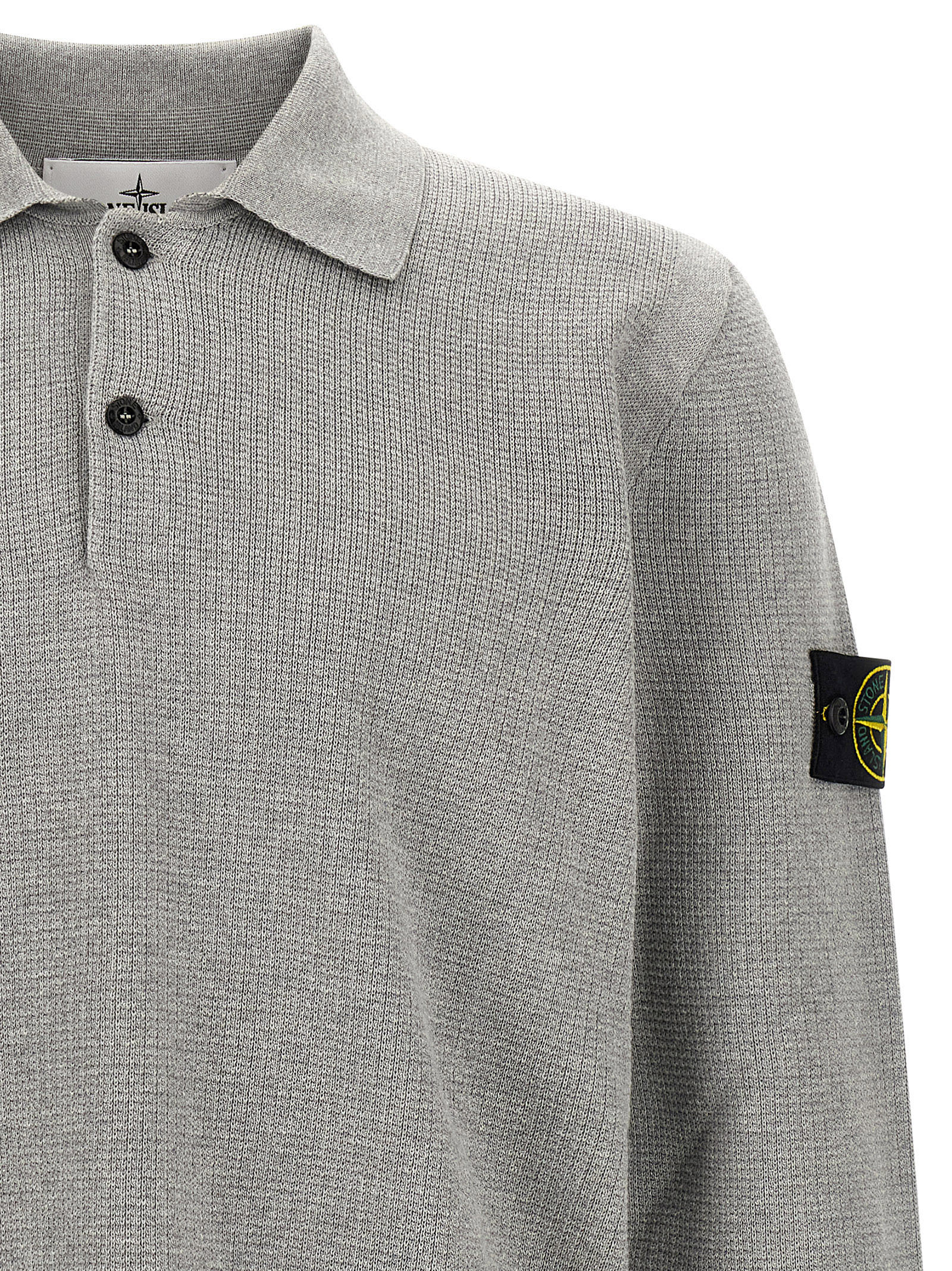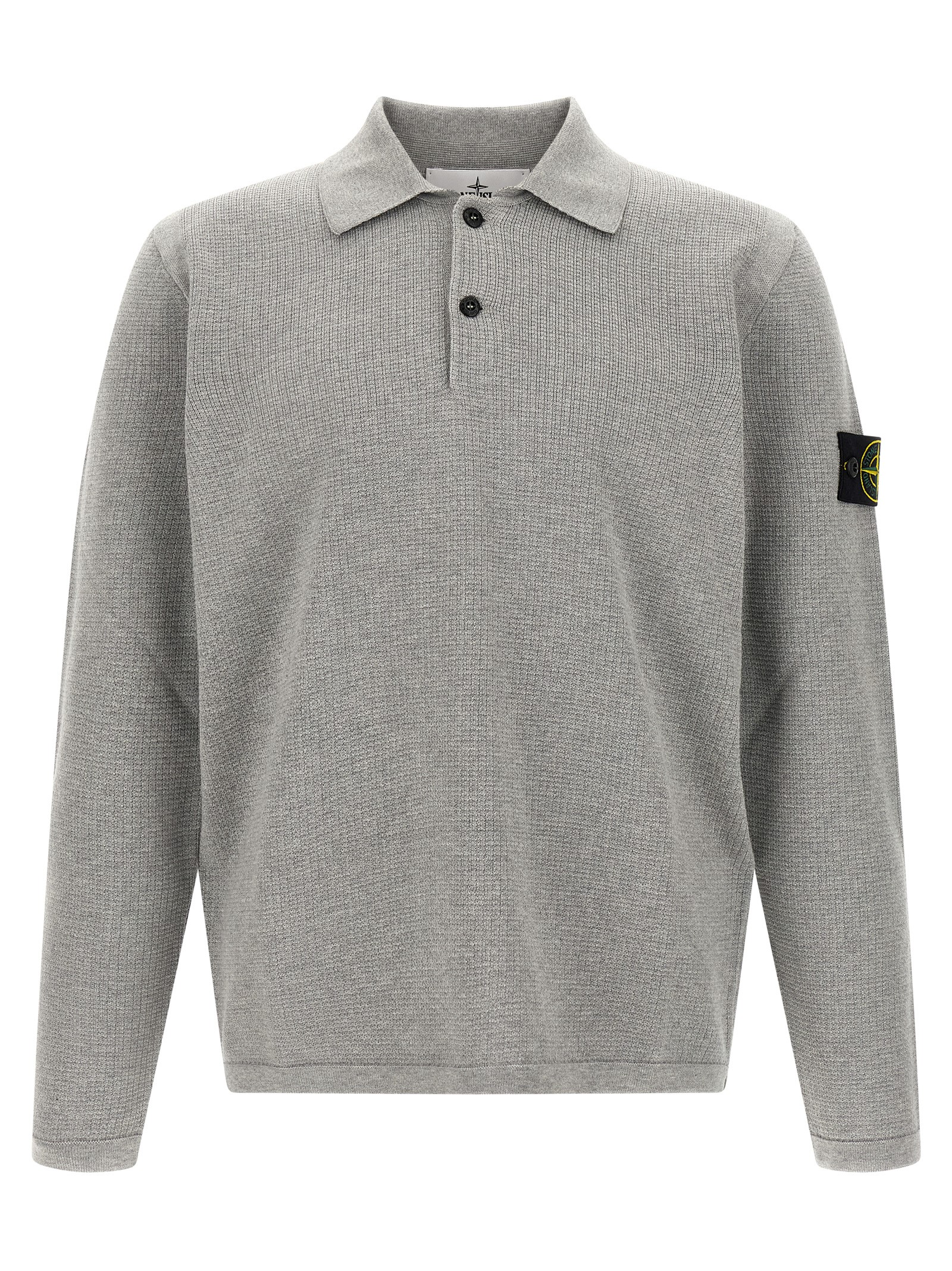‘5100024’ micro fineness 14 stitch cotton polo shirt, long sleeves, collar and buttons, long sleeves with cuffs and logo badge appliqué, side slits._x000D_