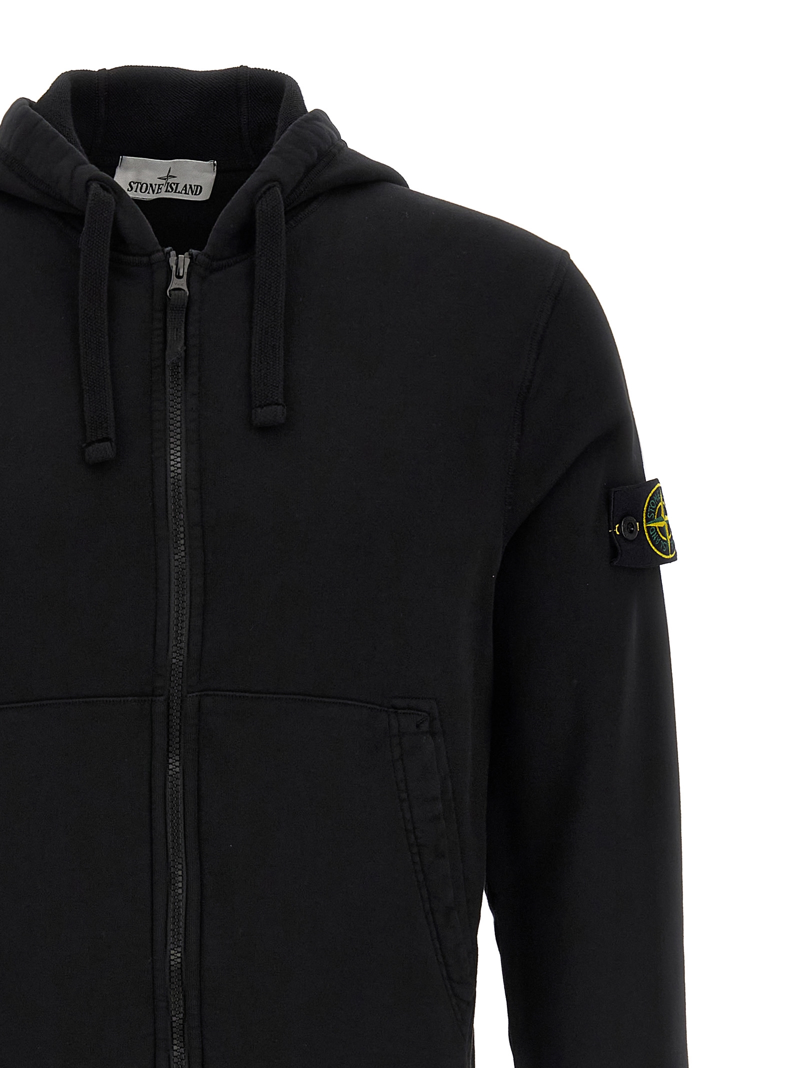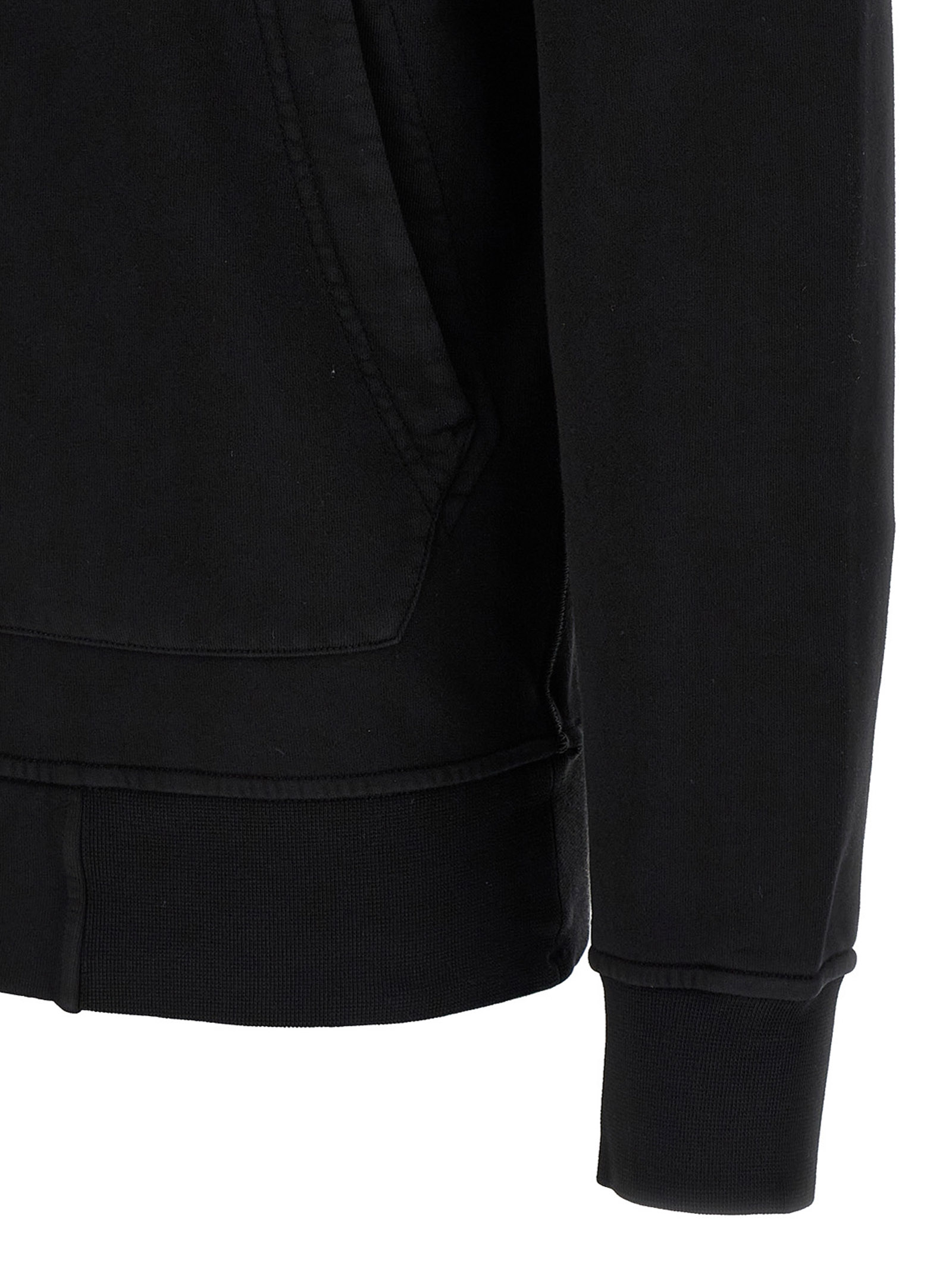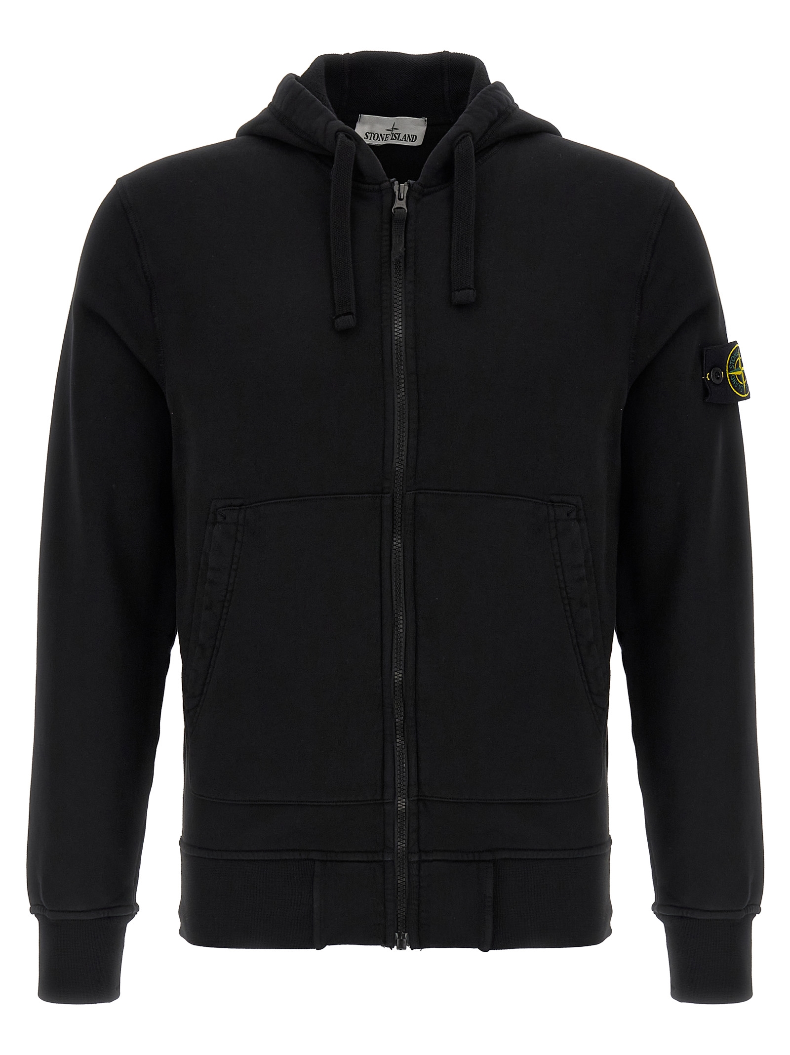 Garment-dyed cotton ‘6100061’ hoodie of intermediate heaviness, Overlock stitching, Front zip closure, Pockets, Long cuffed sleeves, Dropped shoulders and logo badge.
