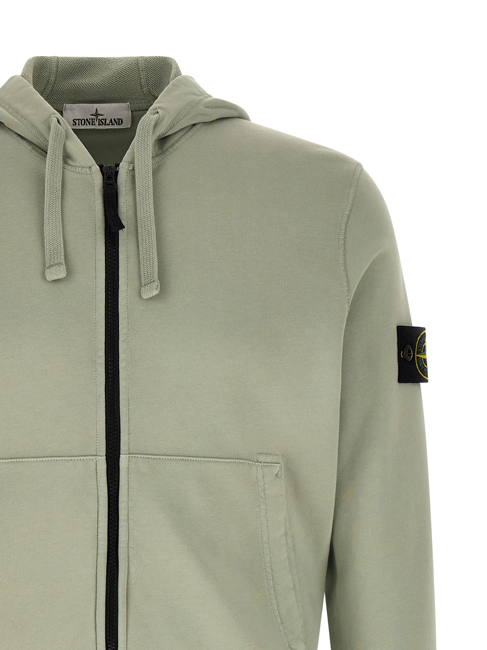 Garment-dyed cotton ‘6100061’ hoodie of intermediate heaviness, overlock stitching, front zip closure, pockets, long cuffed sleeves, dropped shoulders and logo badge._x000D_