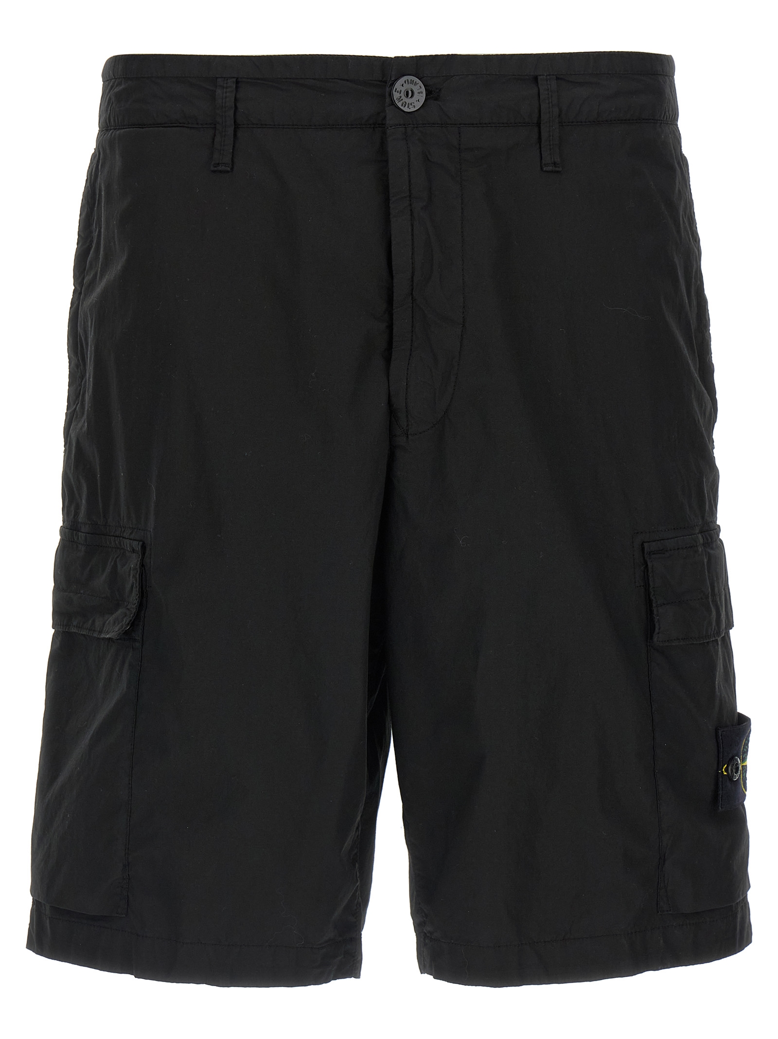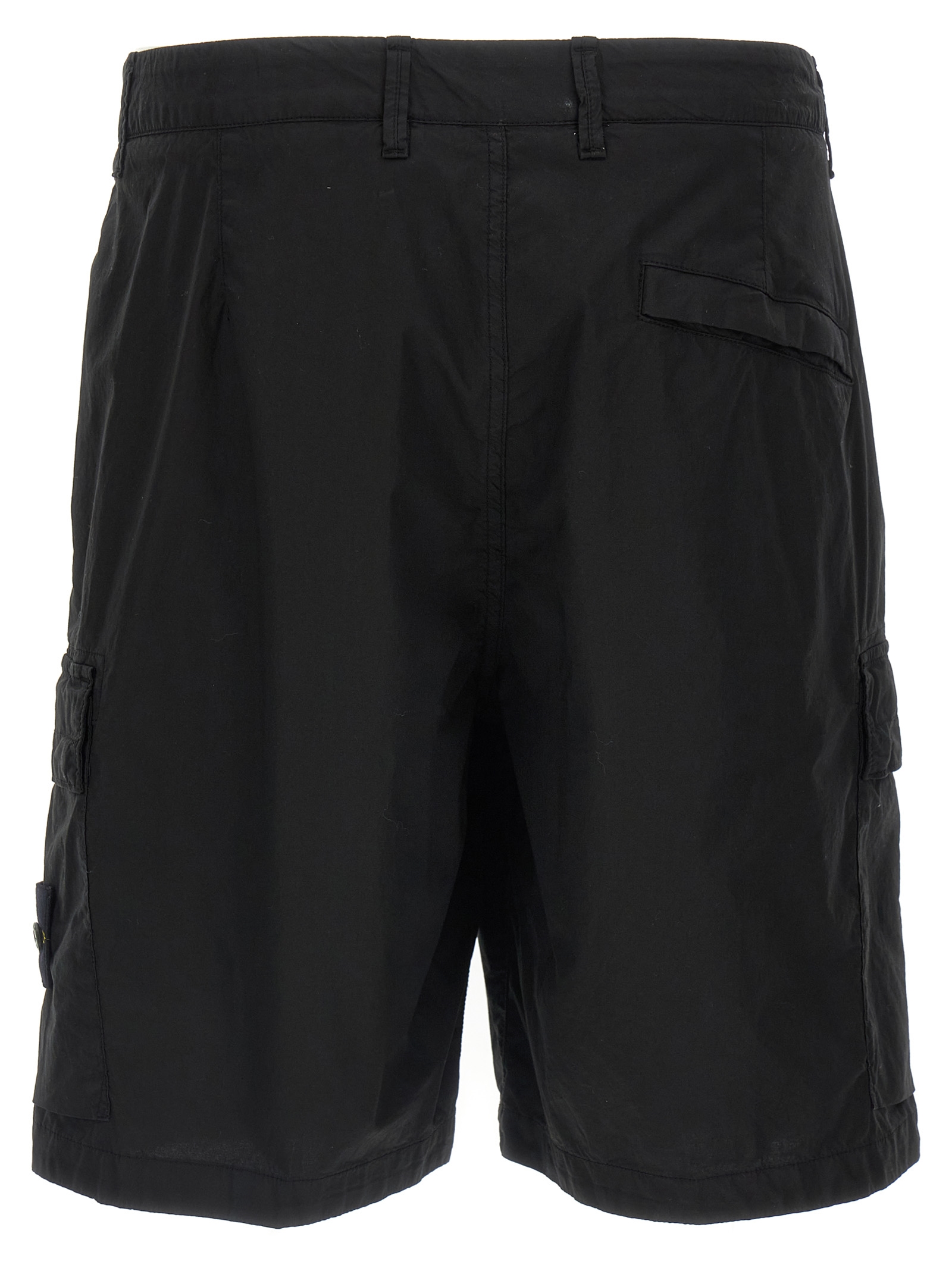 ‘l100020’ bermuda shorts in light ‘paracadute’ garment-dyed stretch cotton canvas, Cargo style with side pockets and logo badge, Zip and front button closure, Pockets.