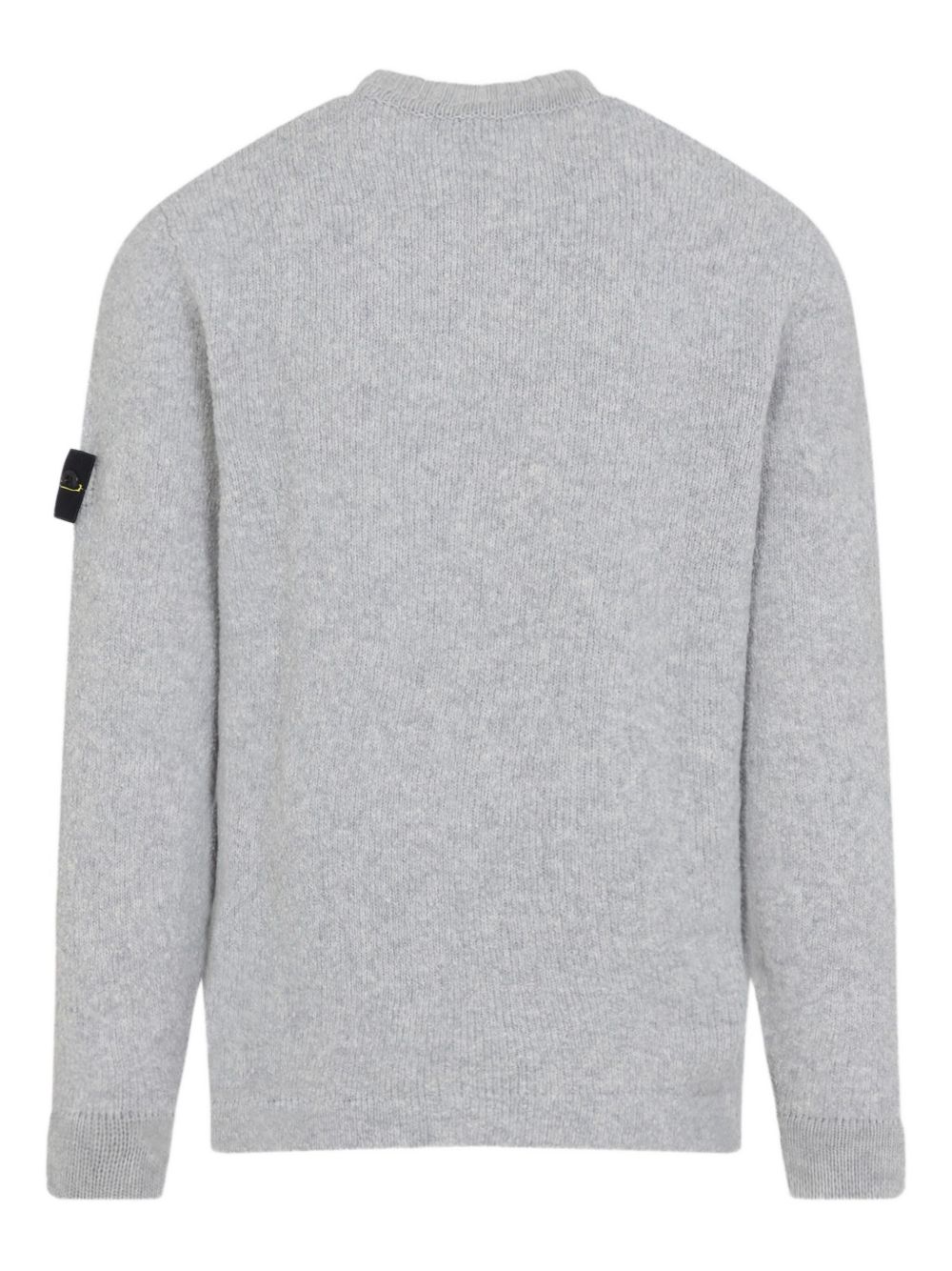 dark gray ribbed knit crew neck long sleeves logo patch wool Wool blend crewneck sweater