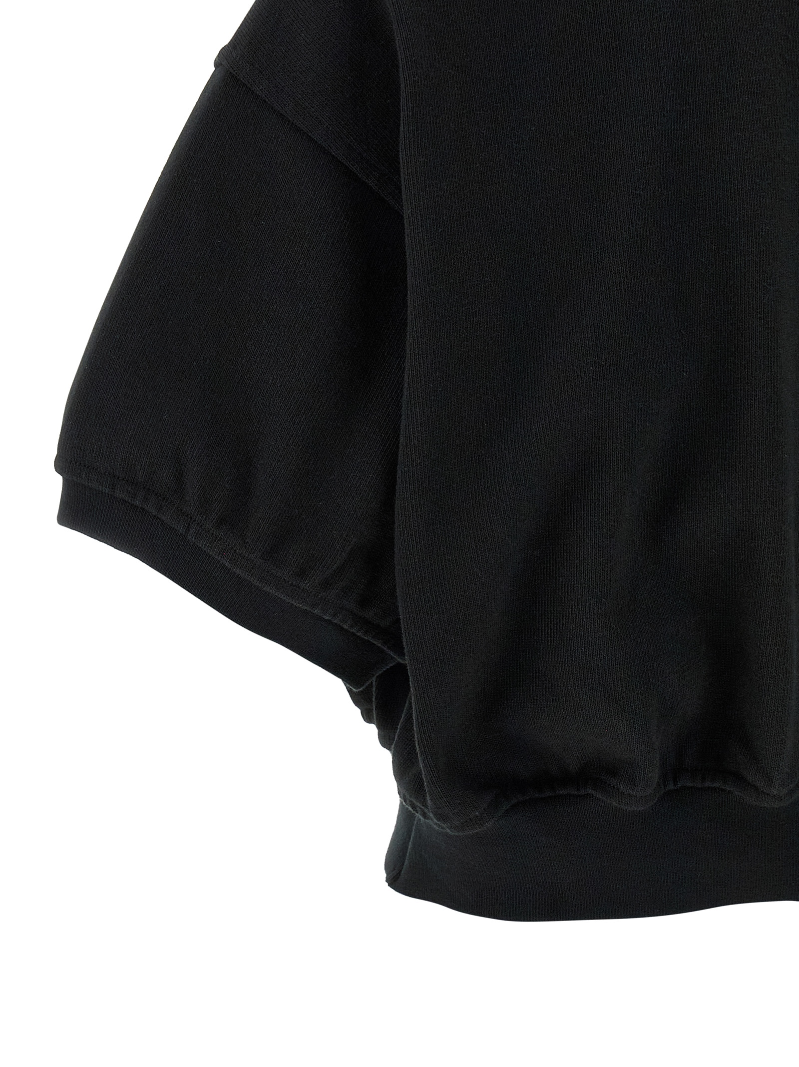Compact japanese cotton jersey polo shirt, Crop model, Knitted collar with contrasting intarsia logo, Buttons, Short sleeves with cuffs, And headband on the hem. Size and Fit – Relaxed fit