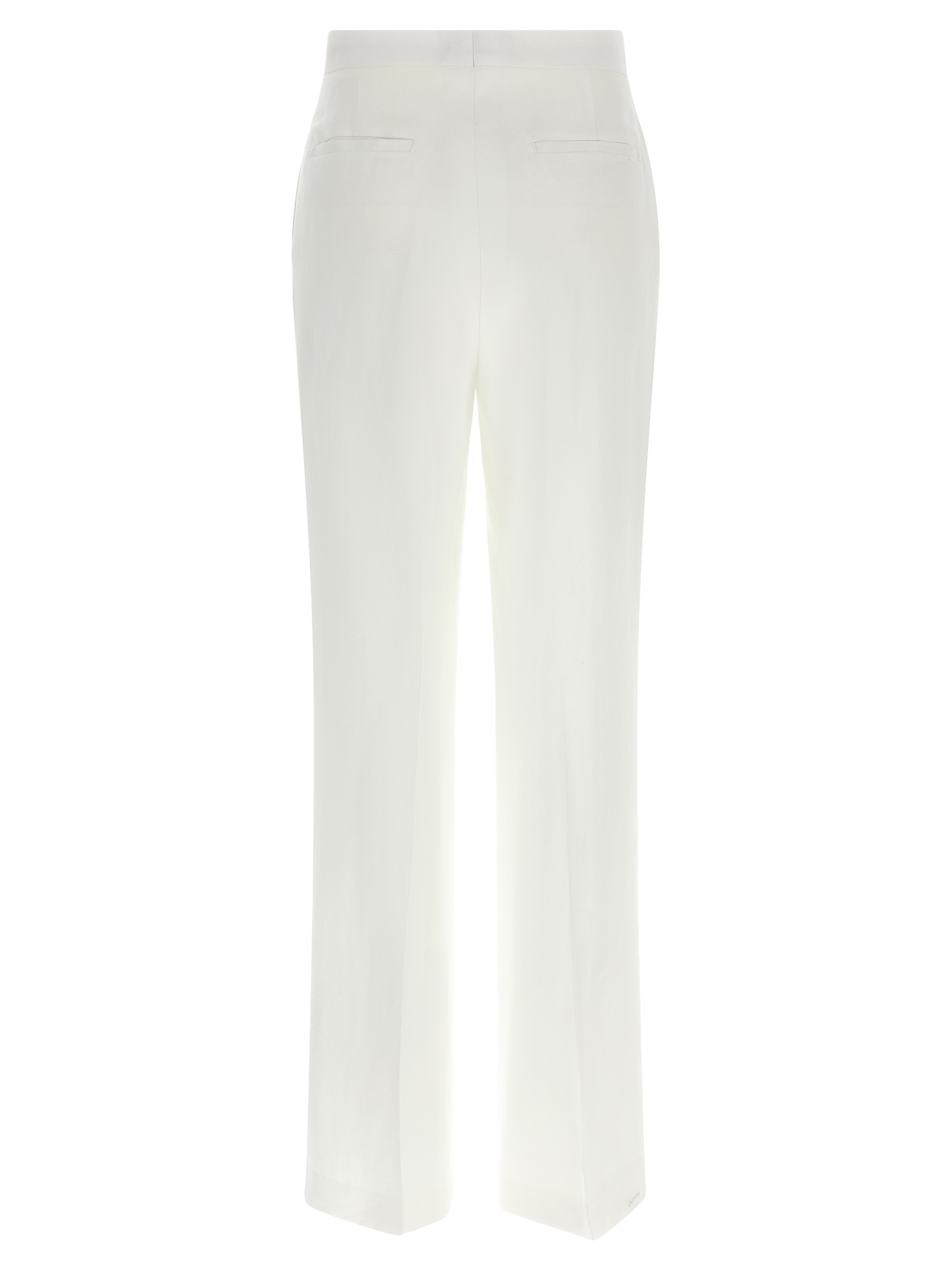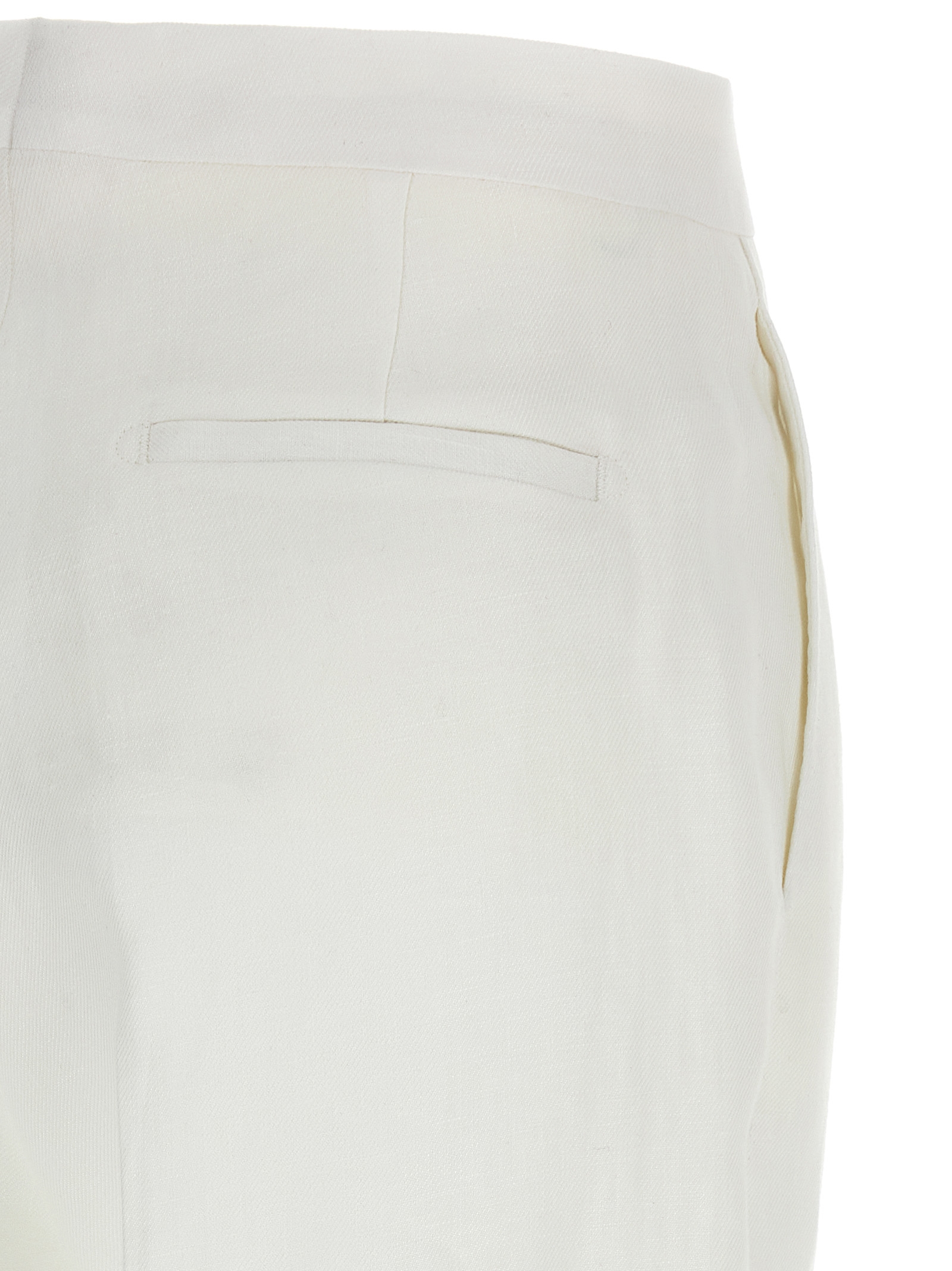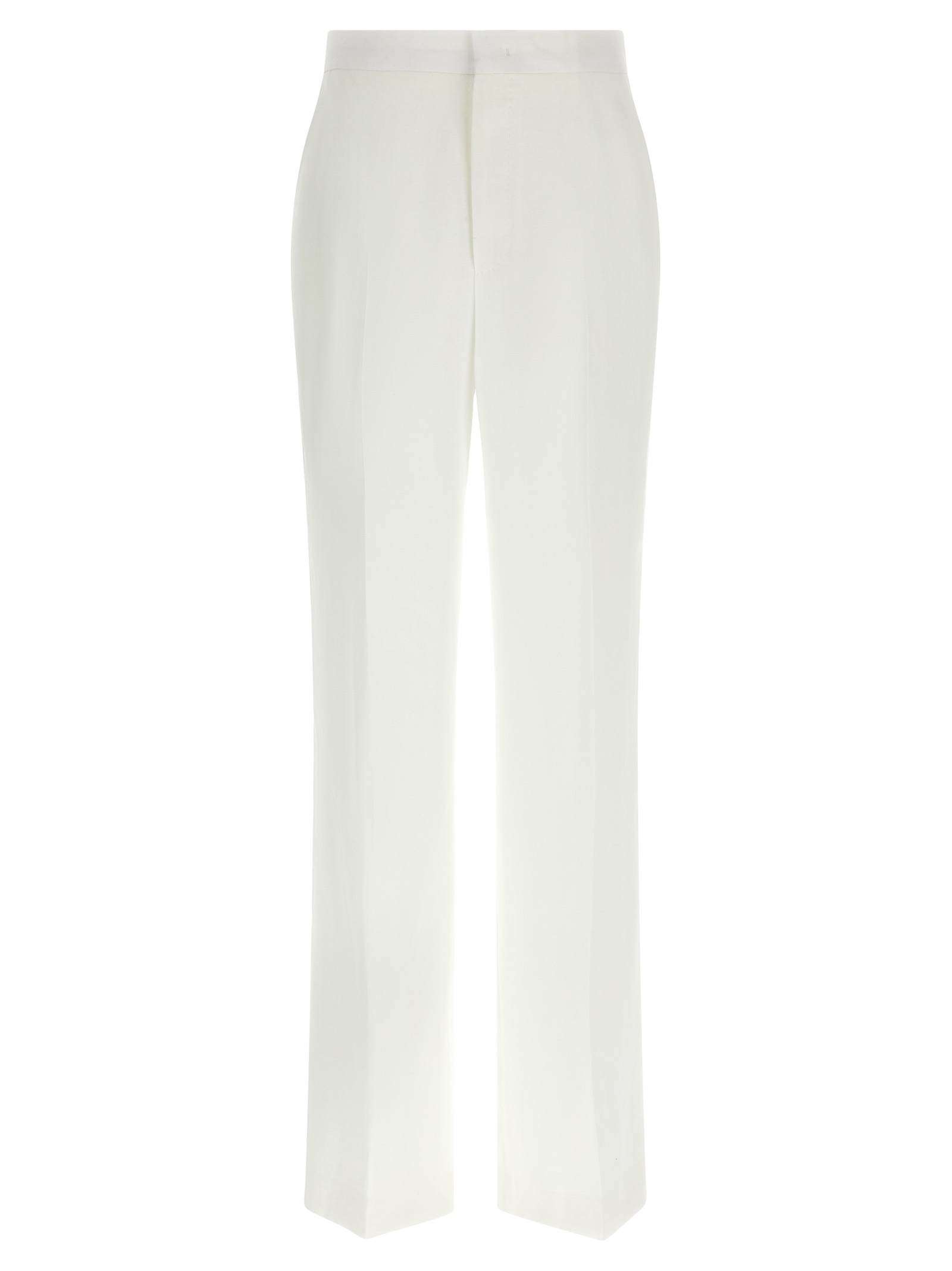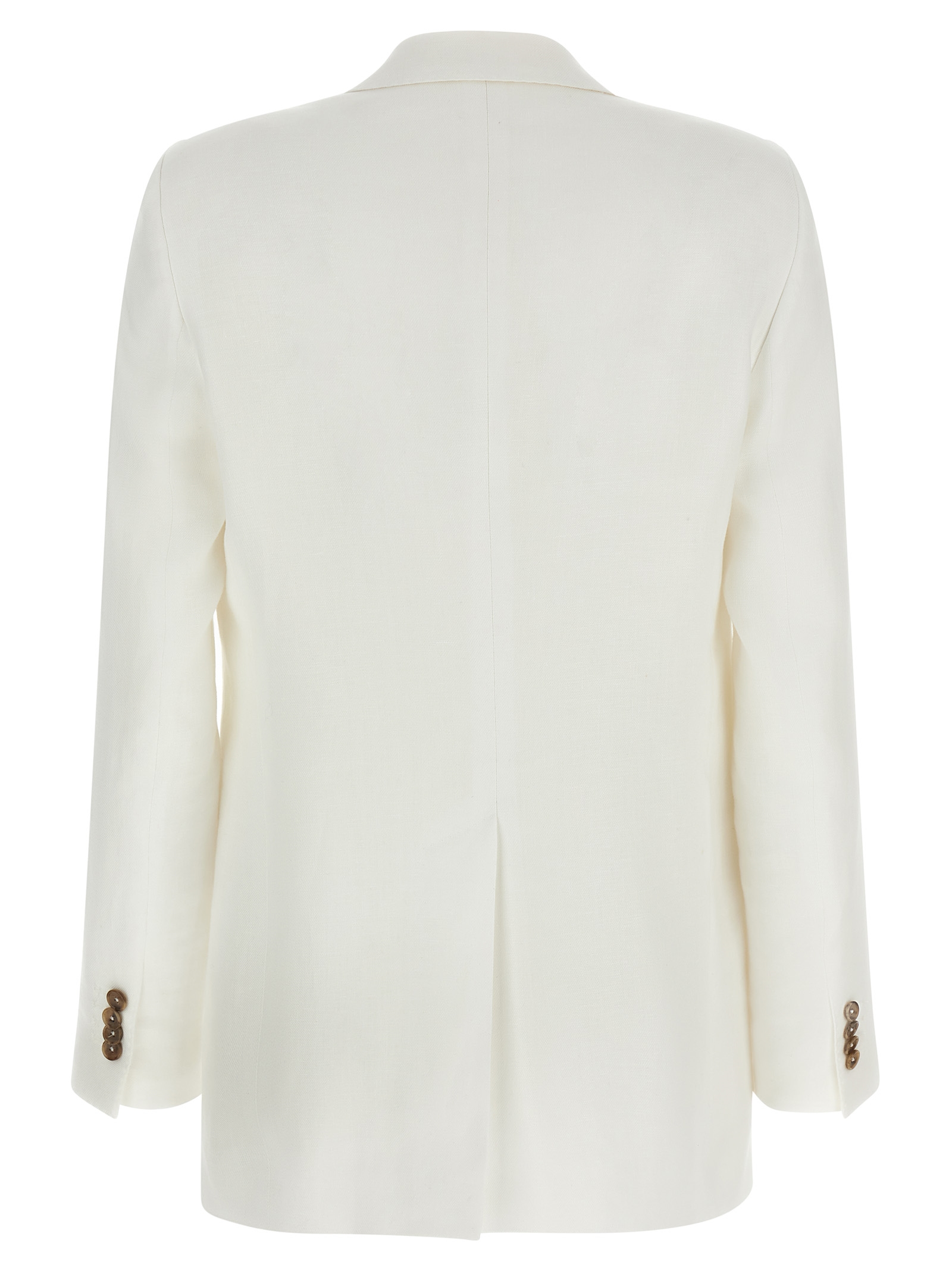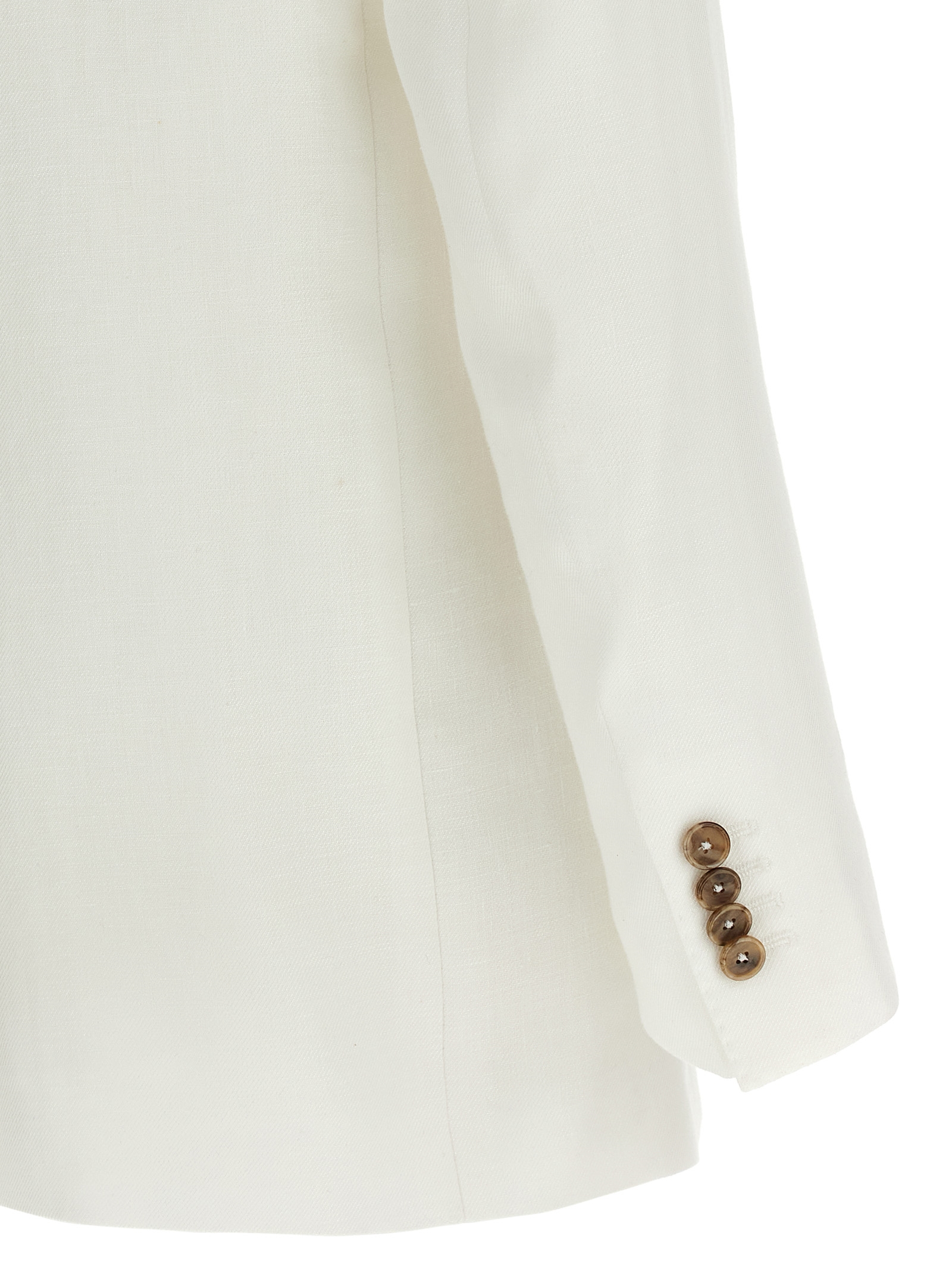 ‘adrianne’ linen dress consisting of single-breasted blazer with front horn button closure, Mirror lapels, Breast pocket, Flap pockets, Back split, Cupro lining and trousers with stretched pleat, Wide and straight leg, Front french pockets, Back welt pockets, Zip and front hook closure, Cupro blend lining.