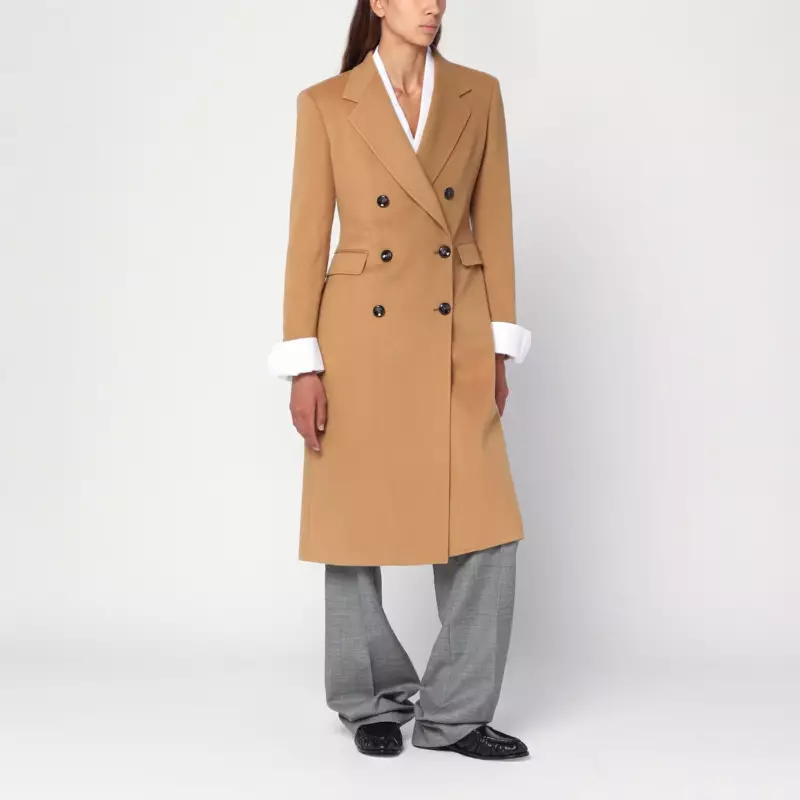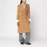Beige wool and cashmere coat by Tagliatore characterized by front buttoning classic lapels long sleeves with buttoned cuffs a back vent and two flap pockets at the front. Size and Fit – Model wears size 40 IT Model measurements: Height: 178 cm Chest: 84 cm Waist: 65 cm Hips: 93 cm