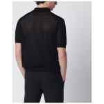 Tagliatore black cotton cardigan, featuring short sleeves, front button closure, polo-style collar, openwork design, and ribbed trims.