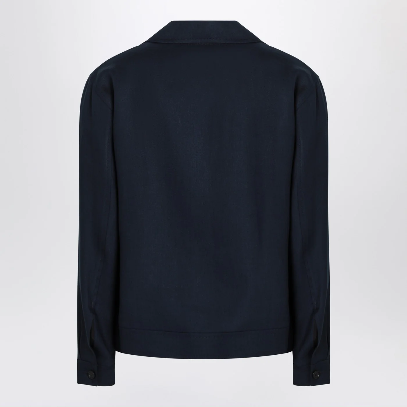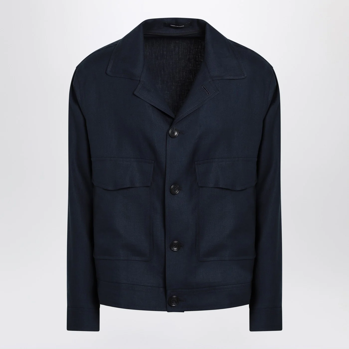 Short jacket by Tagliatore in blue linen featuring a front button fastening two front patch pockets with flaps and long sleeves with button cuffs.