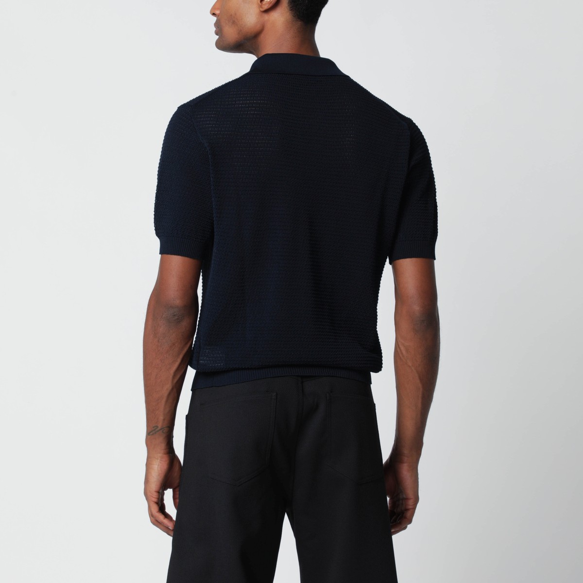 Tagliatore blue cotton polo shirt, featuring an openwork design, short sleeves, ribbed trims and open collar.