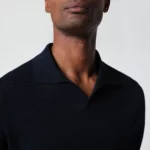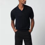 Tagliatore Blue openwork cotton polo shirt