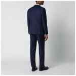 Single-breasted Tagliatore suit in blue virgin wool, featuring long sleeves, button fastening, two front flap pockets, a welt chest pocket, classic lapels and double rear vents. Trousers with front closure, belt loops, two side welt pockets and two rear welt pockets with button.