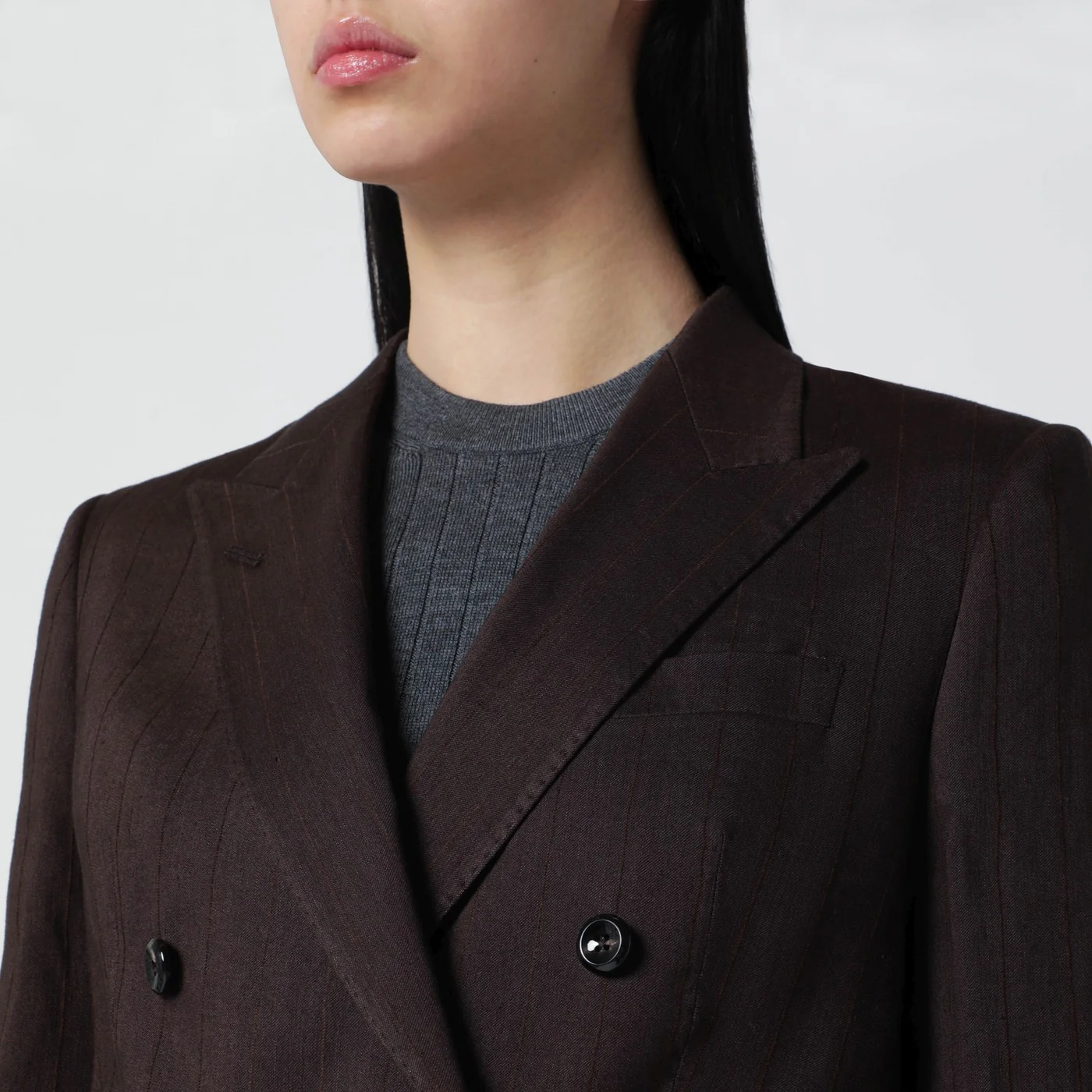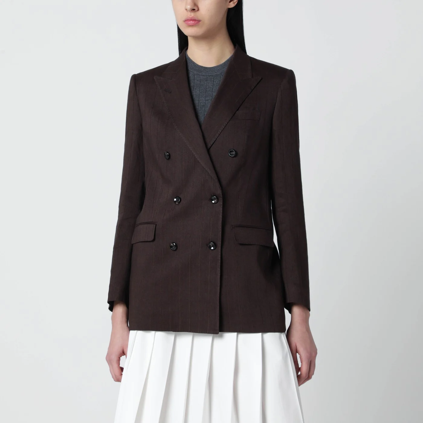 Double-breasted Tagliatore jacket in brown linen blend