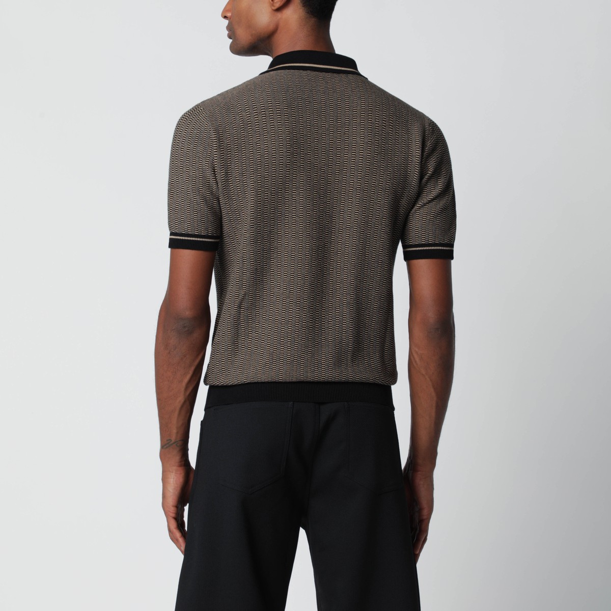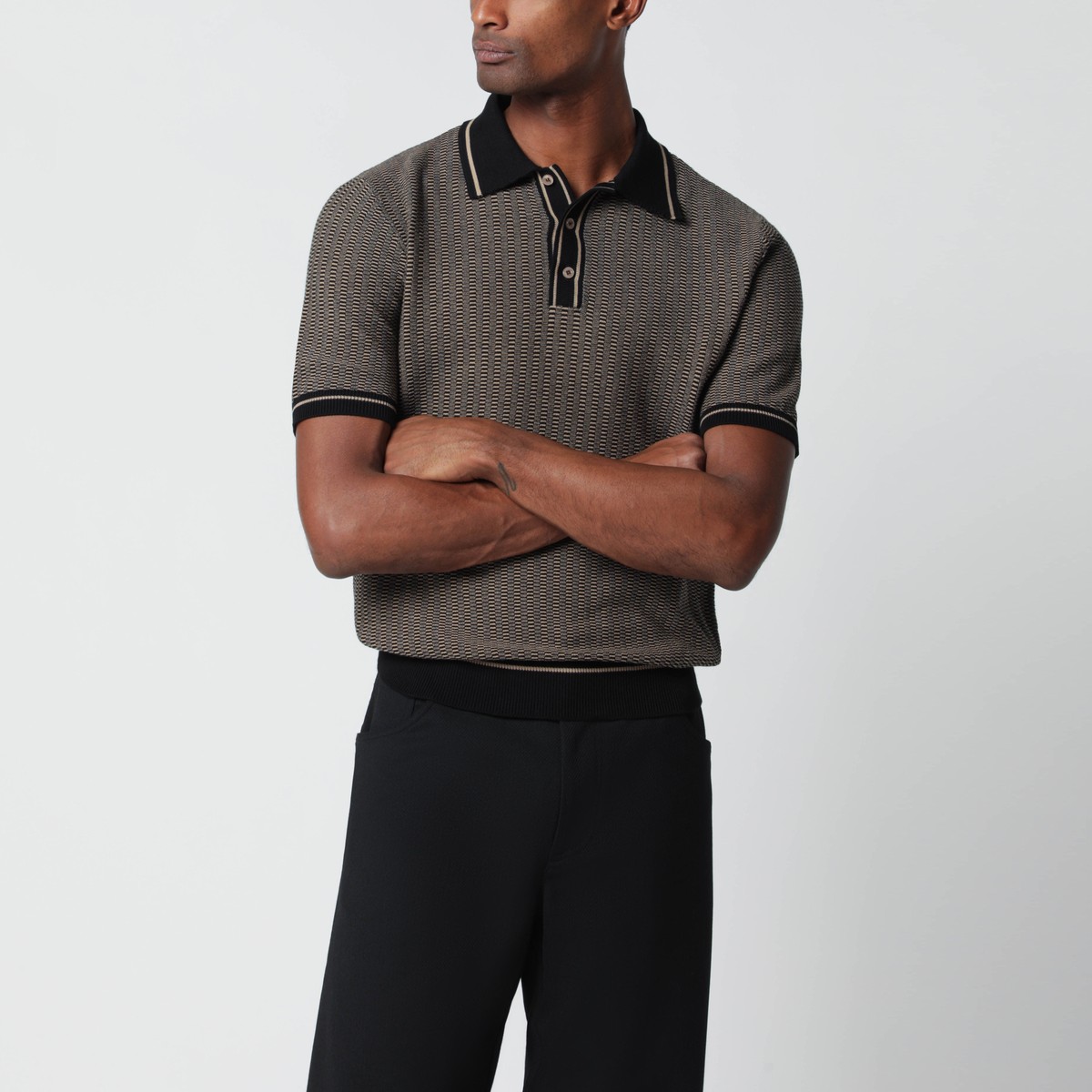 Tagliatore cotton polo shirt with brown-toned jacquard pattern, featuring short sleeves, front buttons and ribbed trims.