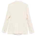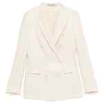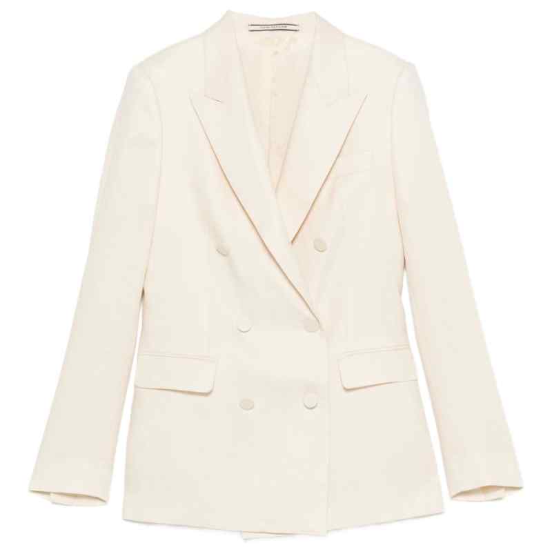beige double breasted button fastening notched lapels front flap pockets long sleeves Linen double-breasted suit.