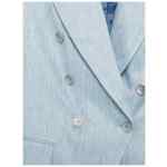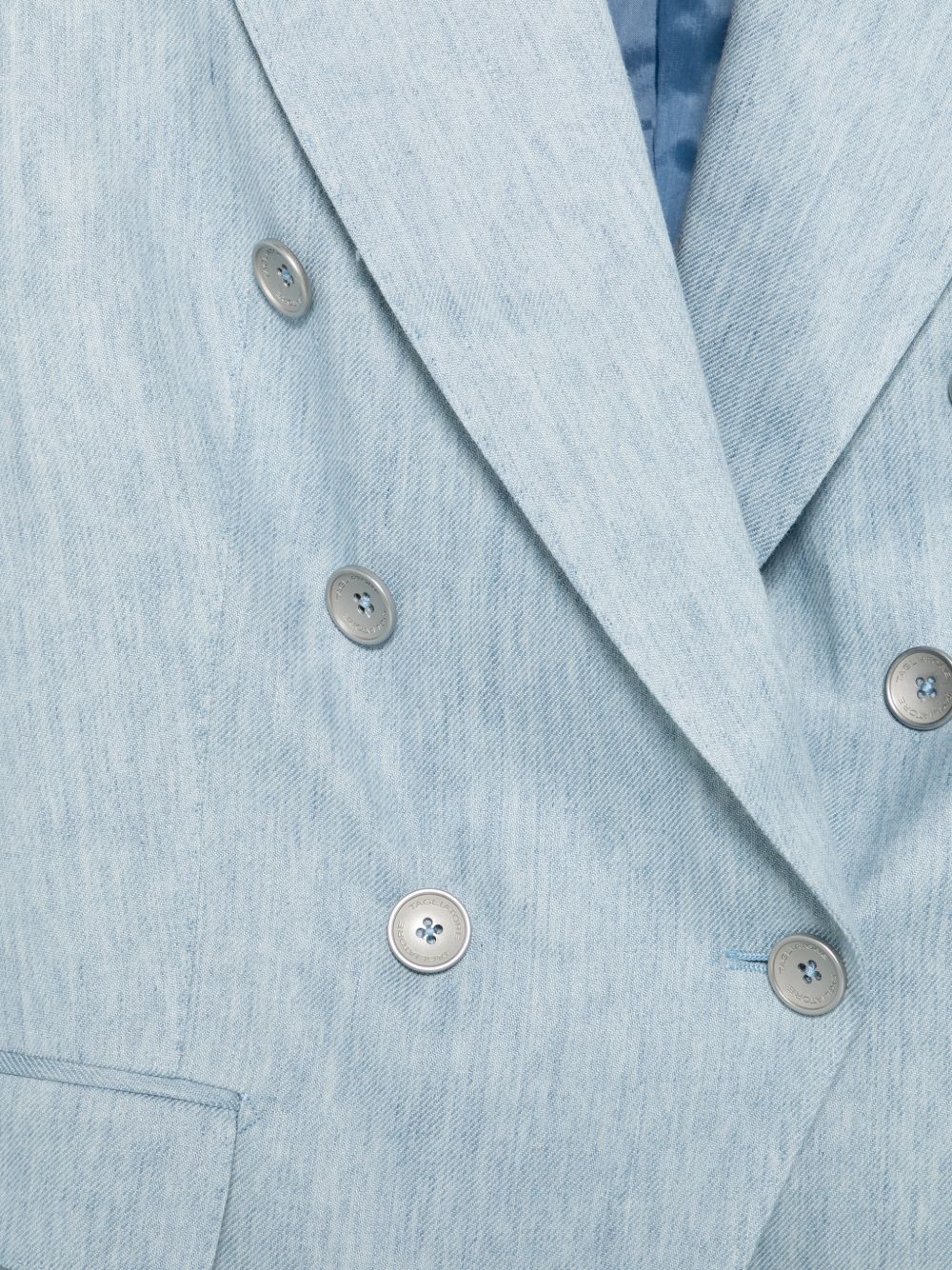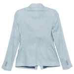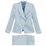 clear blue button fastening peak lapel flap pockets long sleeves Linen double-breasted suit.