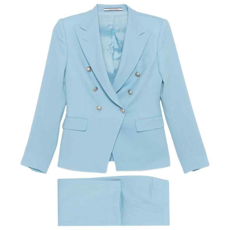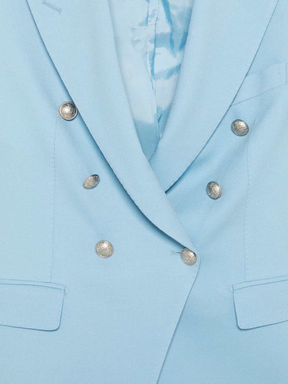 clear blue double breasted button detail pockets Linen double-breasted suit.