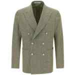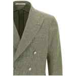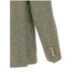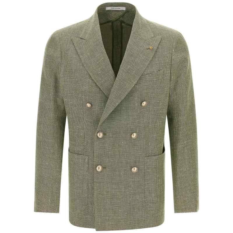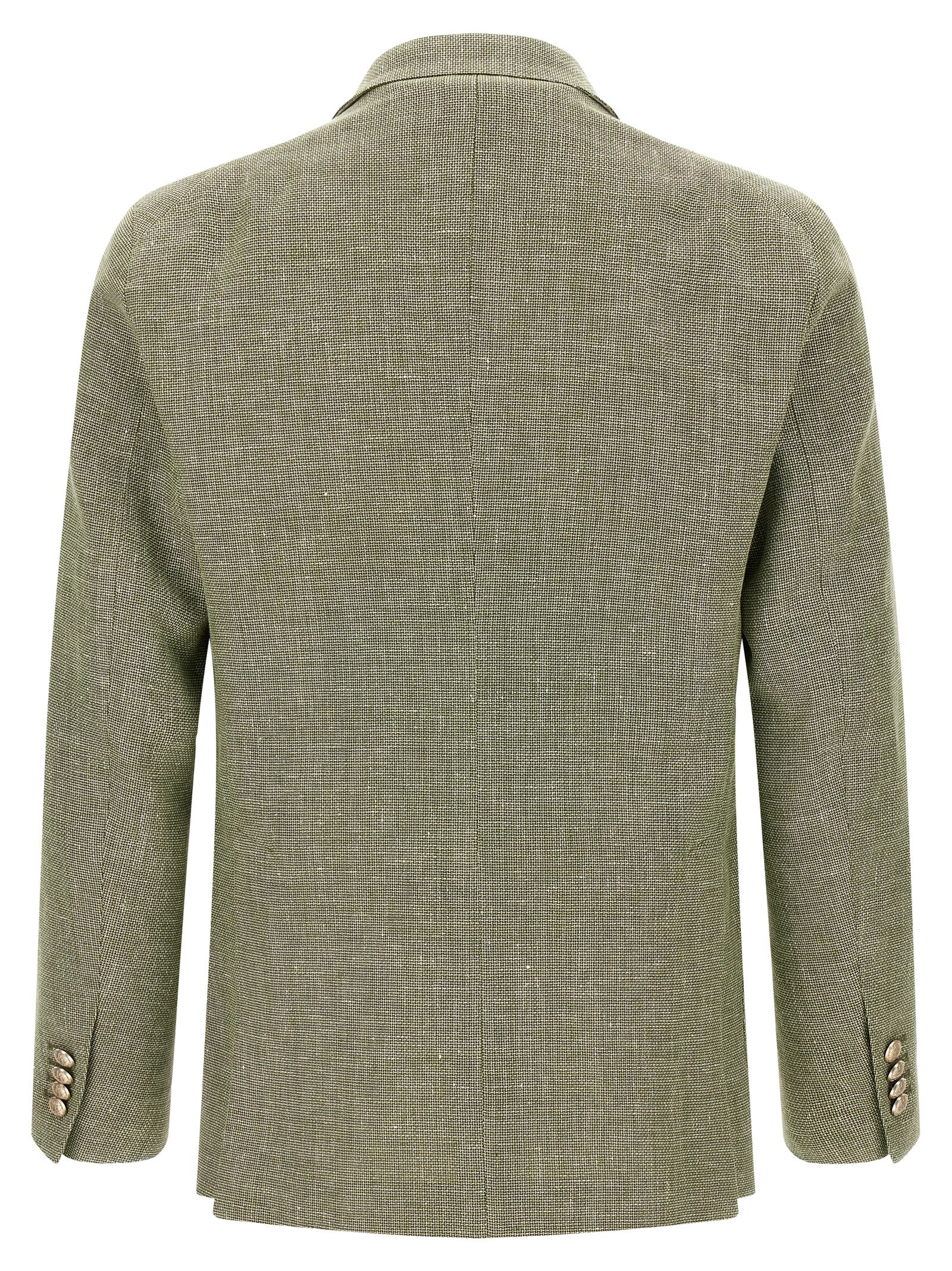‘montecarlo’ double-breasted blazer in cotton and linen blend jacquard with front button closure, Peak lapels with removable metal brooch, Chest pocket, Patch pockets, Unlined, Three inner pockets, Cuffs with open buttonholes, Back vents. Size and Fit – True to size fit