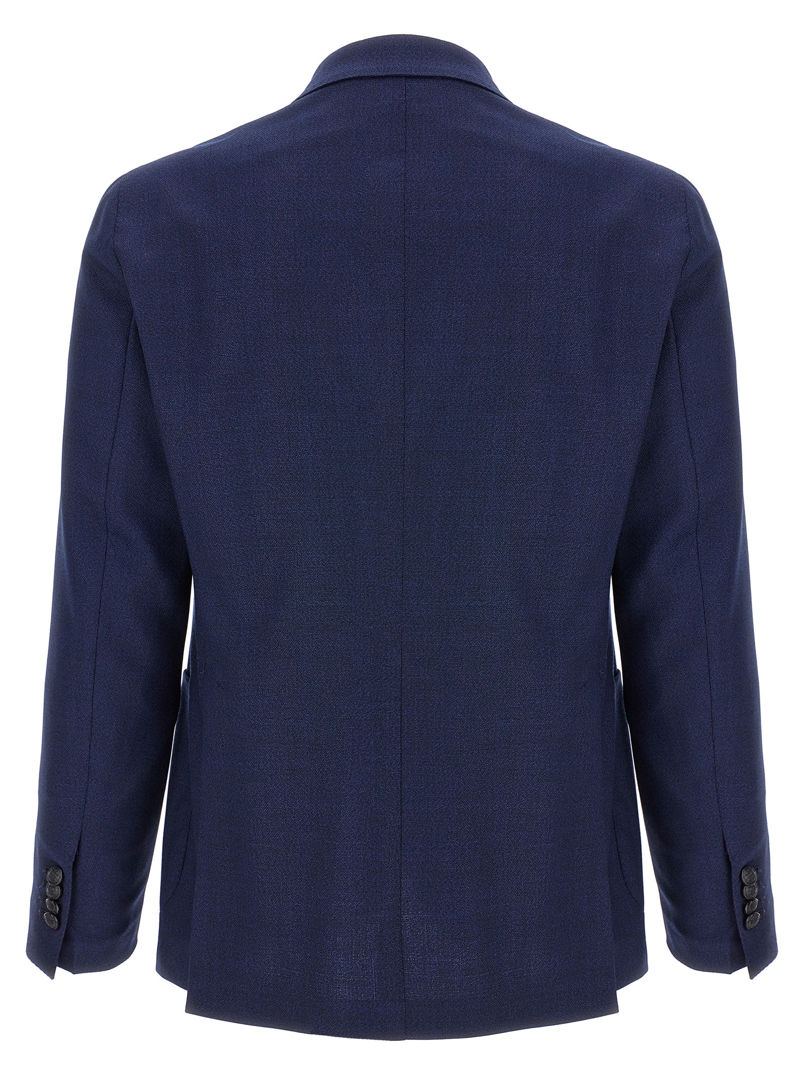 ‘Montecarlo’ single-breasted blazer in micro opsac wool with button closure, pockets, long sleeves, back vents.